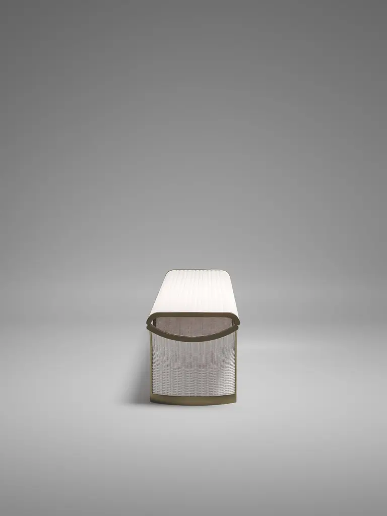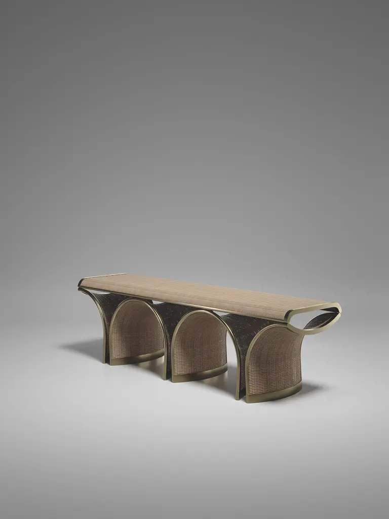 Rattan Bench With Bronze Patina Brass Inlay By R&y Augousti
