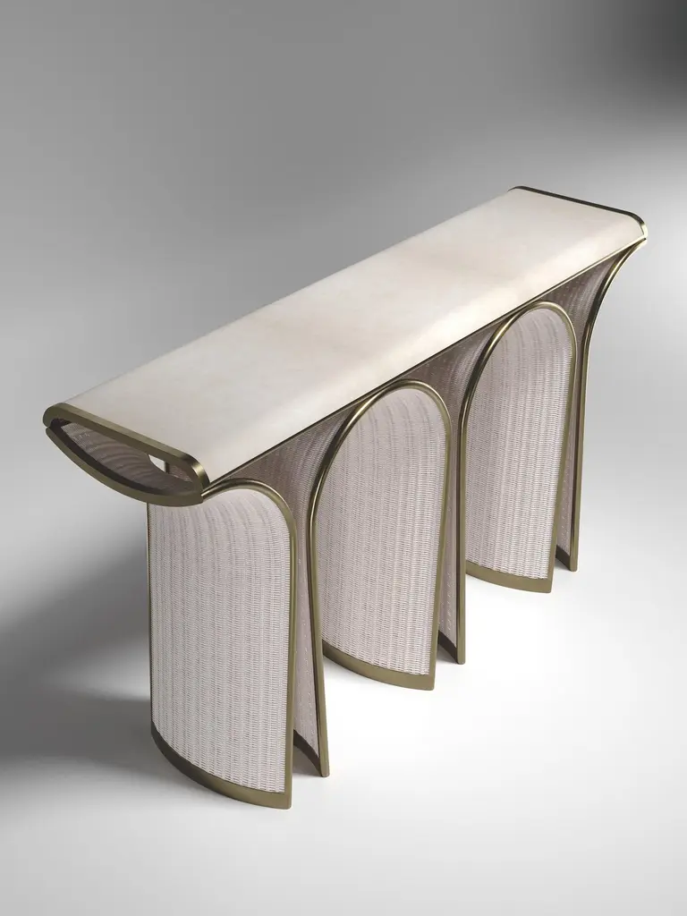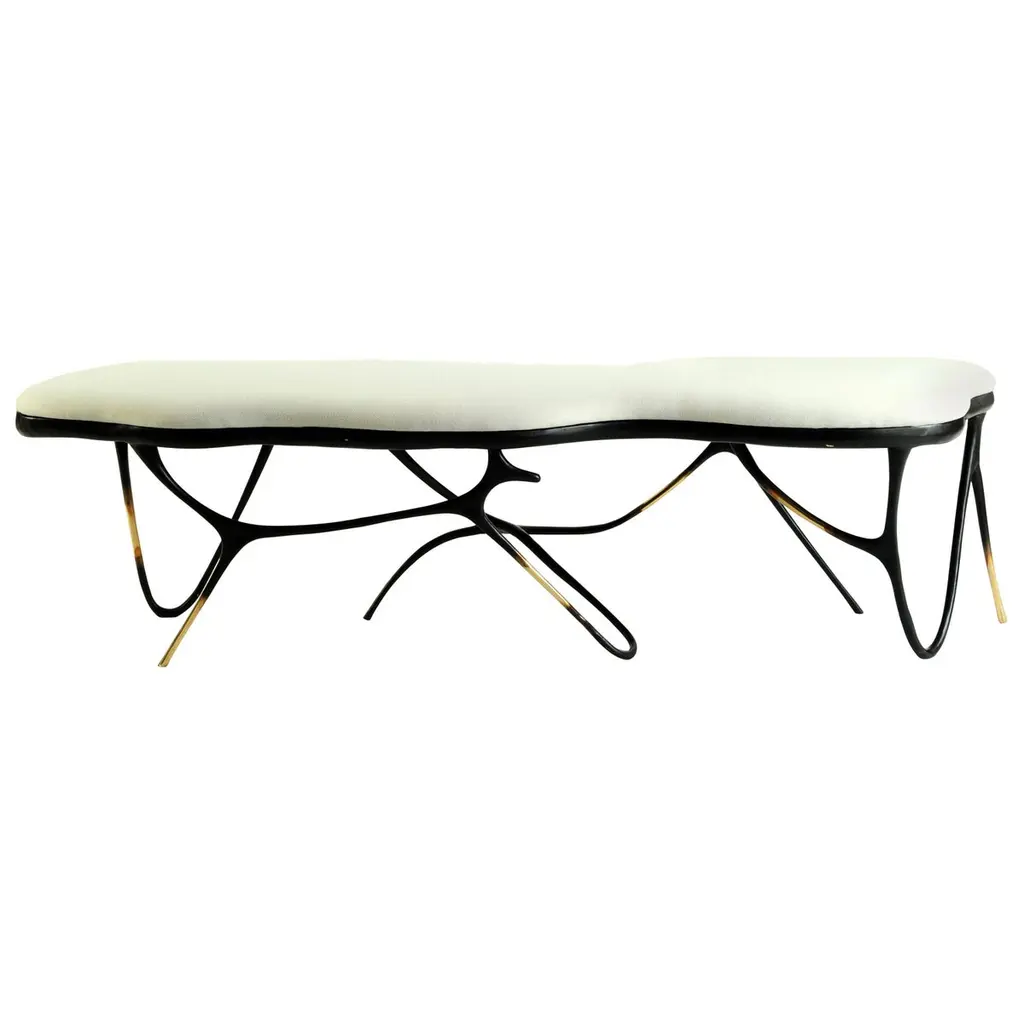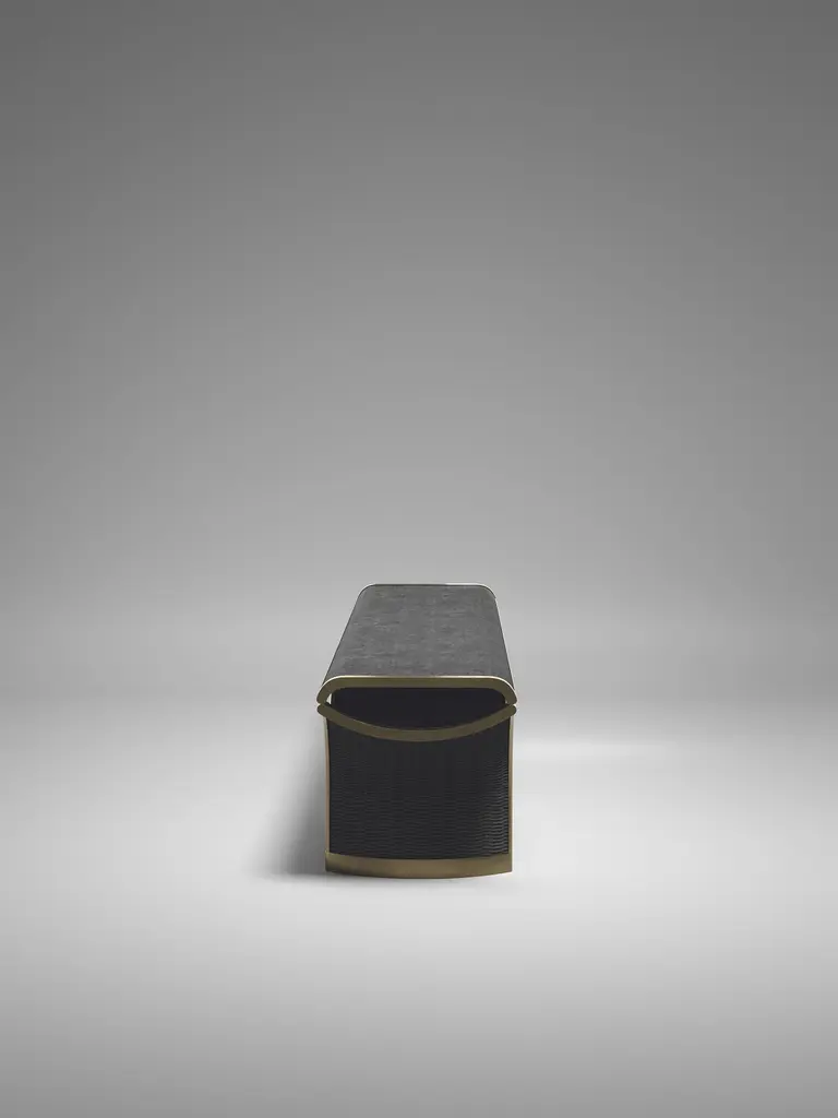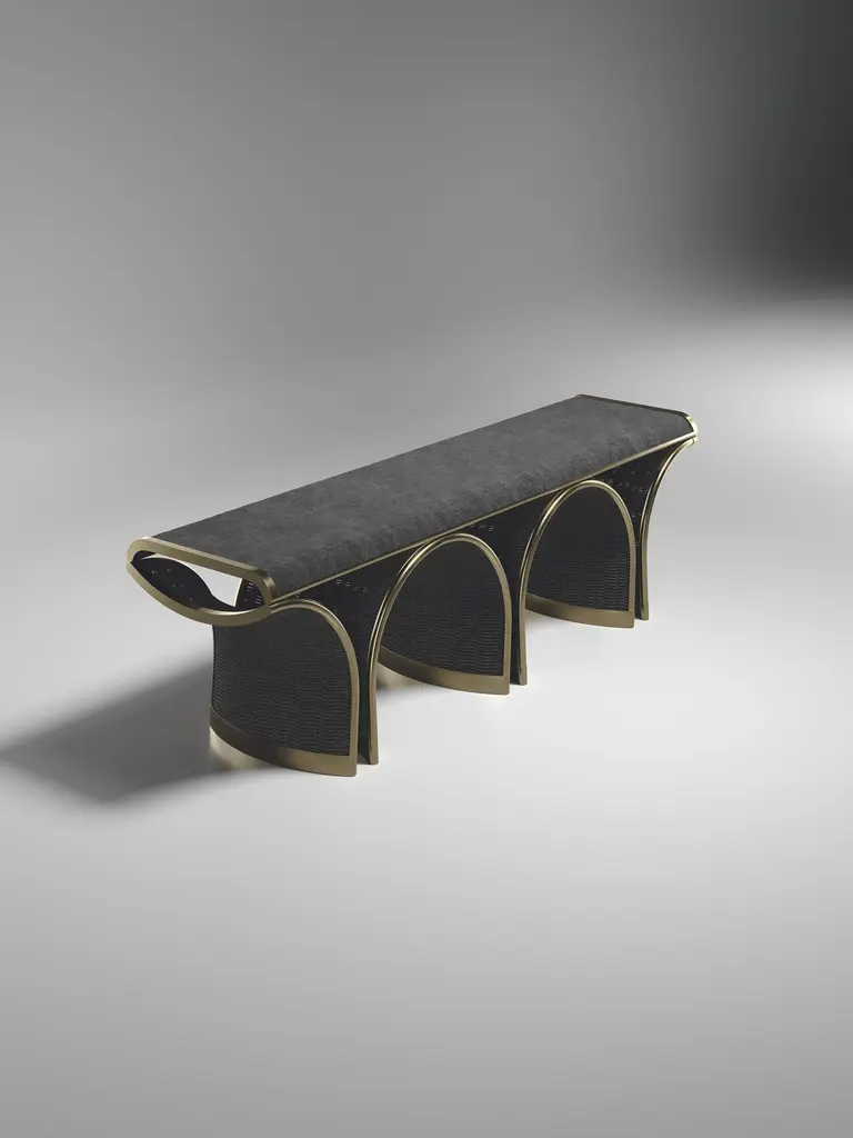The Paris based label has distinguished themselves since their launch, with their iconic use of shagreen mixed with brass and other exotic materials. All furniture is handcrafted by skilled artisans, ultimately making each piece unique, designed in Paris and produced in the Philippines.The Nymphea Bench by R & Y Augousti is a part of their new Rattan capsule launch. The piece explores the brand's iconic DNA of bringing old world artisanal craft into a contemporary and utterly luxury feel. This seating piece is done in a black rattan finish, with a black velvet upholstered seat and bronze patina brass details. Available in other finishes. Part of the Augousti Rattan capsule, see images of the collection at end of slide. Custom sizing/finishing on requestThe dimensions of this piece are:Measures: 155 x 41 x 45 cmAll R & Y Augousti pieces are handmade by artisans, ultimately making each piece unique.Wipe clean with soft dry cloth.Acclaimed design duo Ria & Yiouri Augousti have established themselves since the 1990s as pioneers of modern-vintage style through their luxurious Art Deco inspired collections.The Paris based label has distinguished themselves since their launch, with their iconic use of shagreen mixed with brass and other exotic materials. All furniture is handcrafted by skilled artisans, ultimately making each piece unique. All shagreen-covered items should be kept out of direct sunlight, color variants may occur on the stingray and other exotic finishes, but this showcases the Parisian label's commitment to creating authentic luxurious products using natural components.
