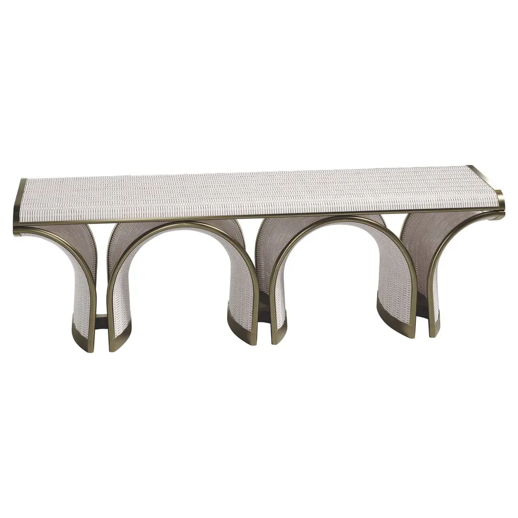 Rattan Bench With Velvet Upholstery Brass Inlay By R&y Augousti