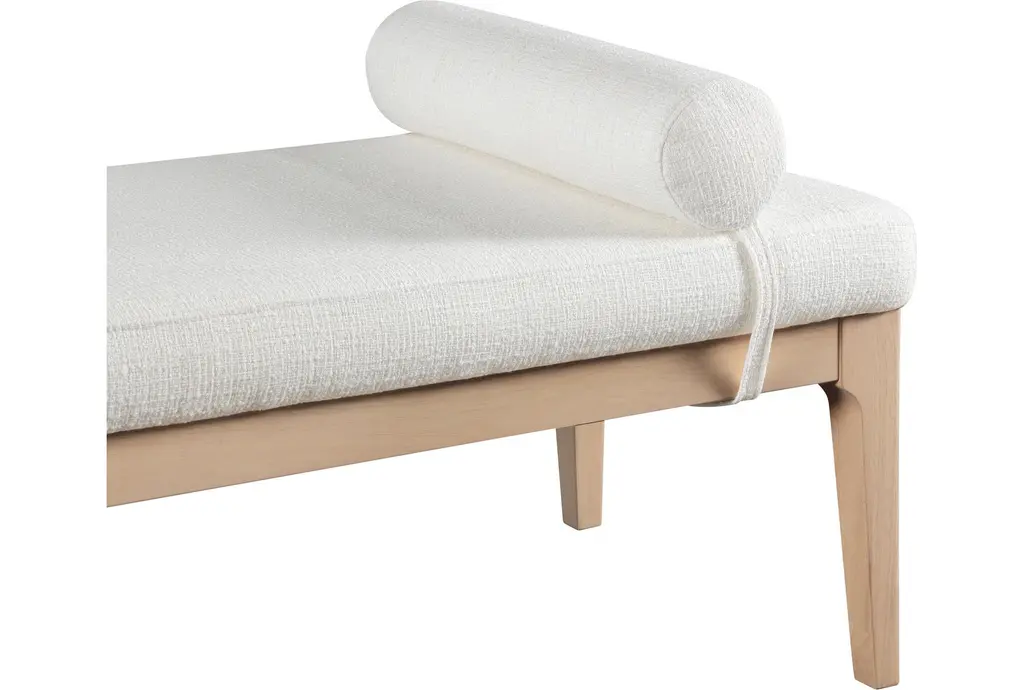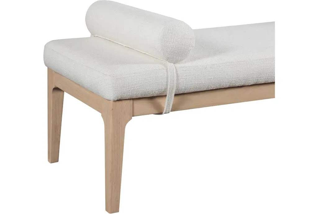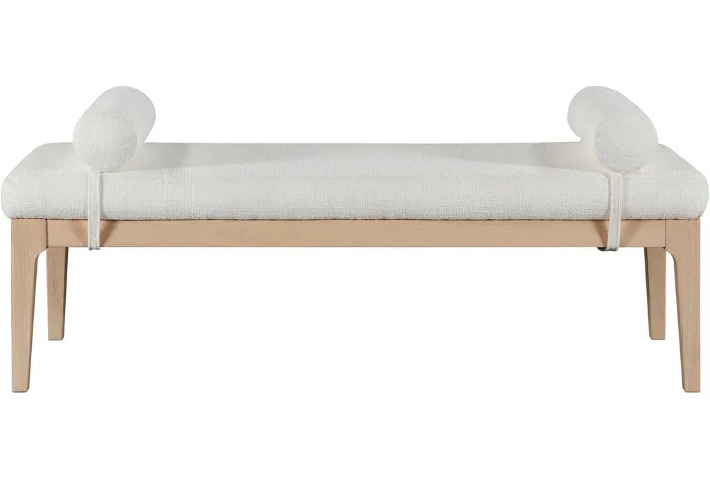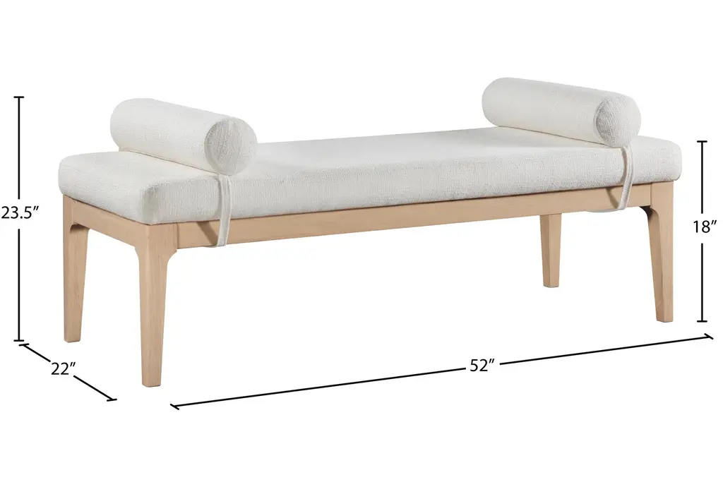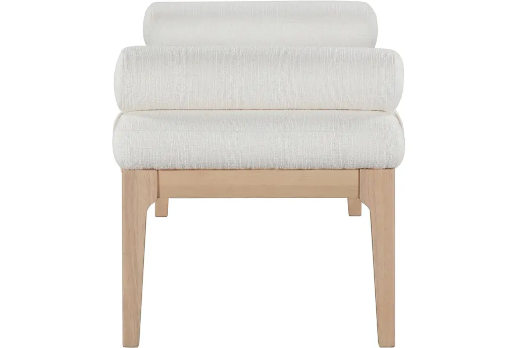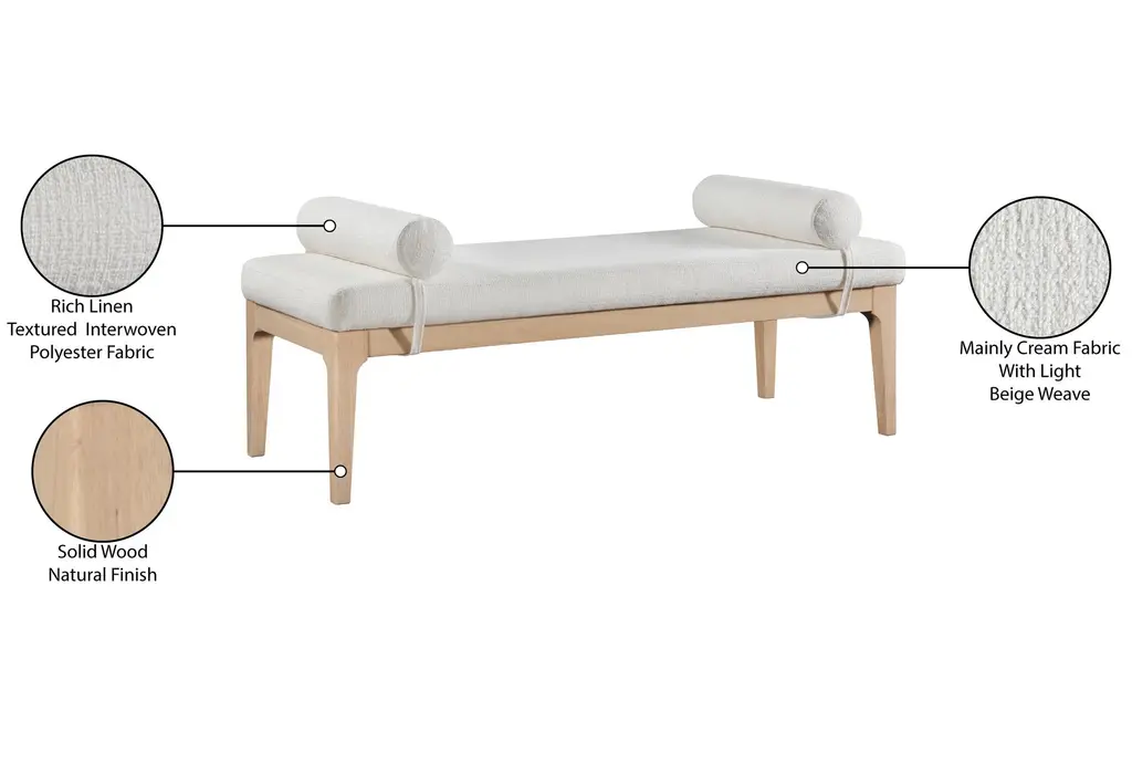 Rayn Cream Linen Textured Upholstered Bedroom Bench With Natural Wood Legs | Entryway