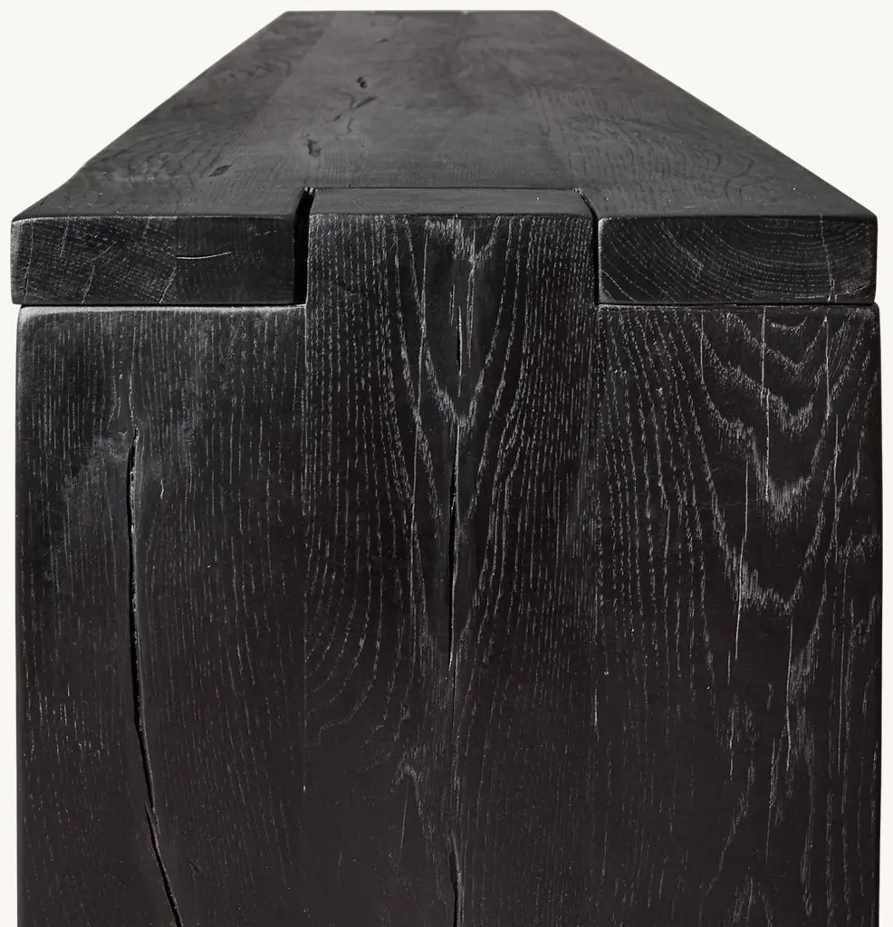 Reclaimed oak timbers from decades-old buildings, with distressed white oak planks for consistency and stability, lend richness to this simple, linear collection from artisan Theo Eichholtz. Each piece is handcrafted of wood that retains its natural character, bearing the occasional knot, nick or crack where no two tables are exactly the same. SHOP THE ENTIRE COLLECTION