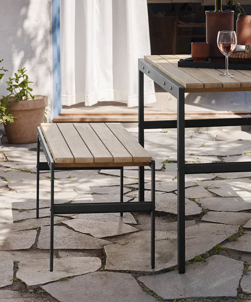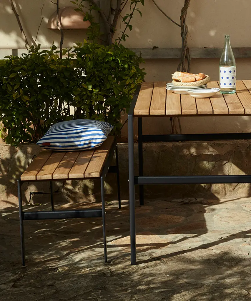 Light, powder coated aluminum meets untreated teak in the Reform Indoor/Outdoor series. This series brings together industrial and natural elements in a classical design where small details stand out. The bench carries a restrained style which makes it highly compatible with other outdoor furniture in various materials and settings. Designed by Louise Hederström and manufactured by Skagerak, a family-owned design company from Denmark established in 1976.