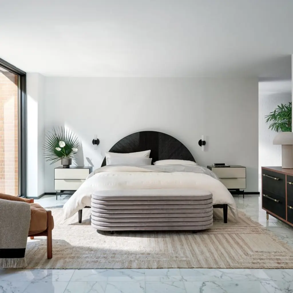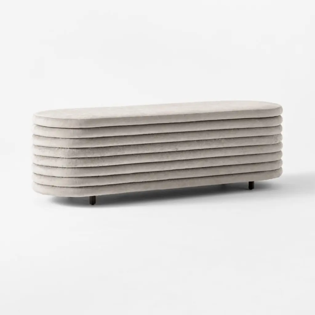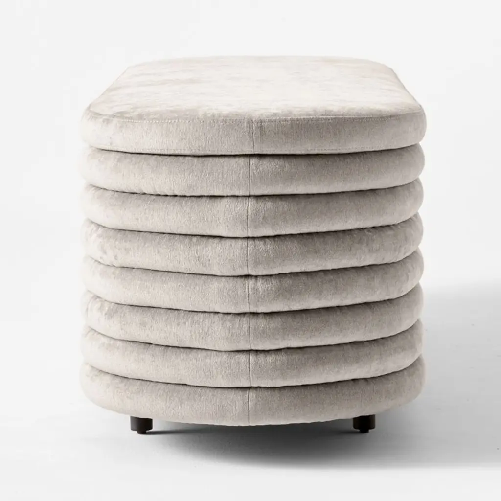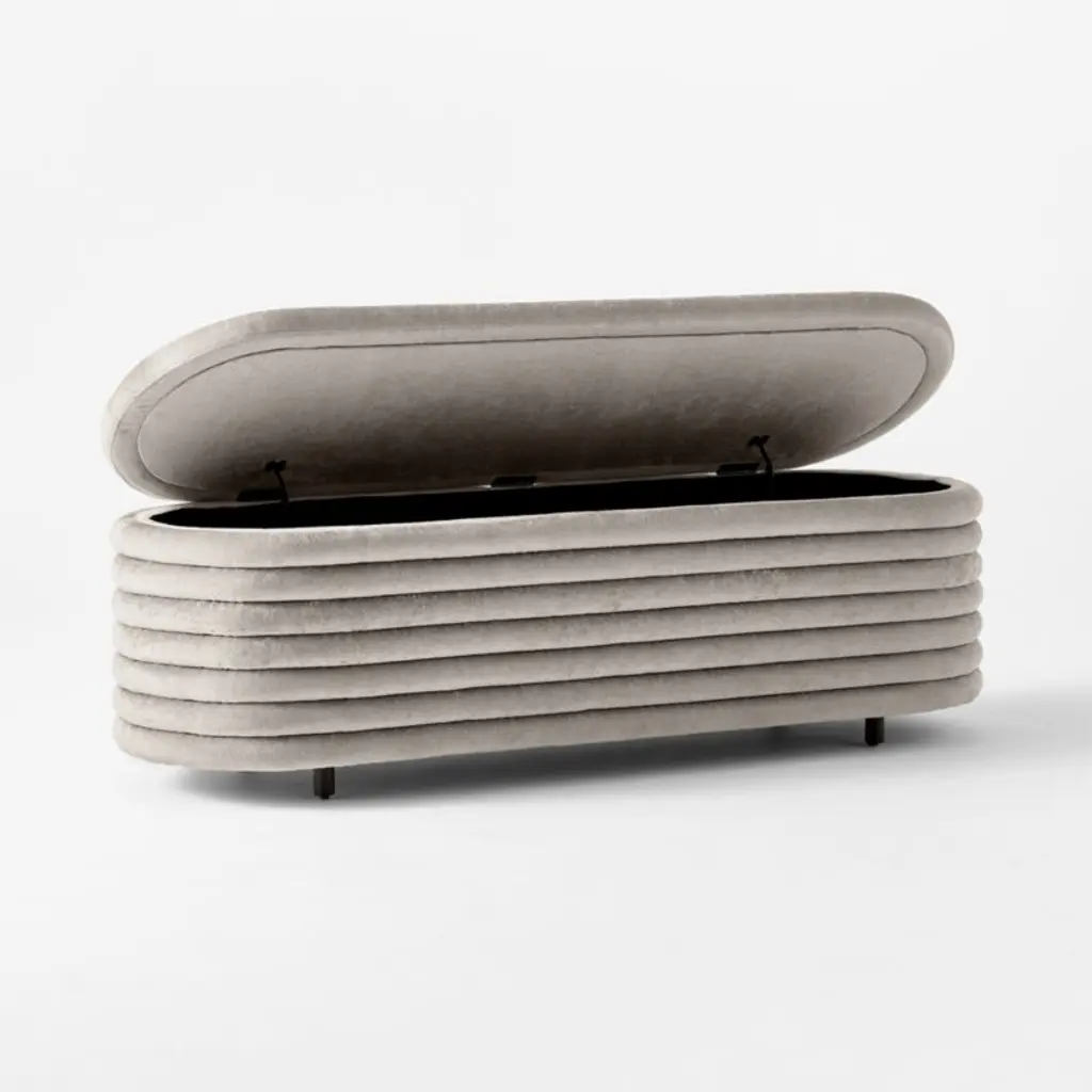 The Italian father-daughter duo behind Balutto Associati brings a relaxed feeling to this channel-tufted storage bench with its curves and soft lines. Concealed storage stashes clutter without ruining the look, perfect for the foot of the bed. We also love it in the entry or living room. CB2 exclusive.