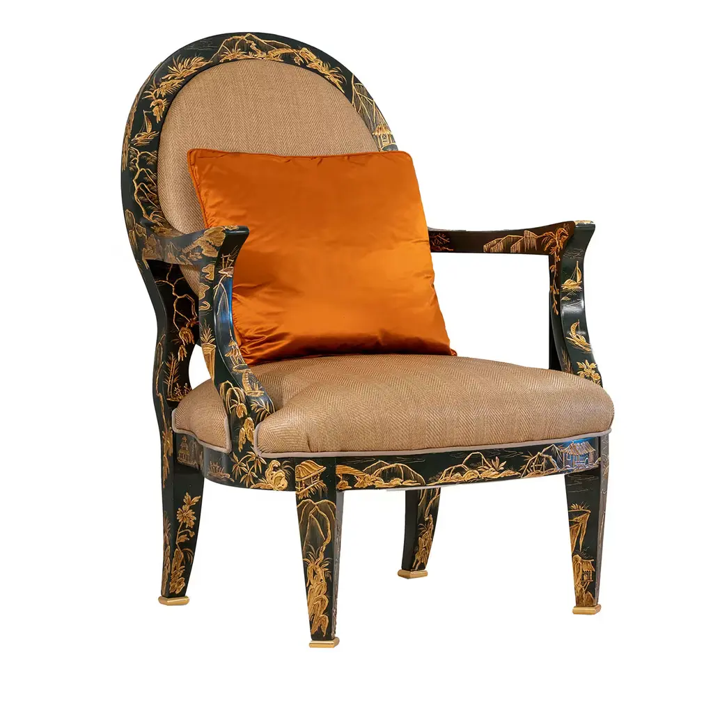 The Rialto Bench is a simple design that is greatly elevated through minute details. A luxurious body is enveloped in Chioco Coral Reef fabric, with small welt trim in Celano Black 2178 on the legs, the seat’s lower edge, and the inner edge of the base. The base, finished in Valyrian Gold, provides playful contrast to the rest of the piece that generates visual interest. Possessing an excess of depth and texture, the Rialto makes for a stunning addition to any interior space.