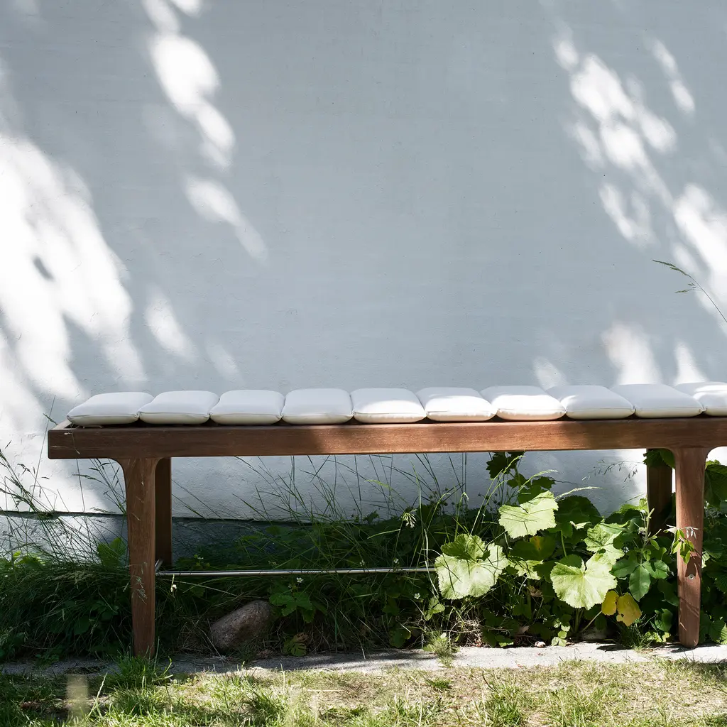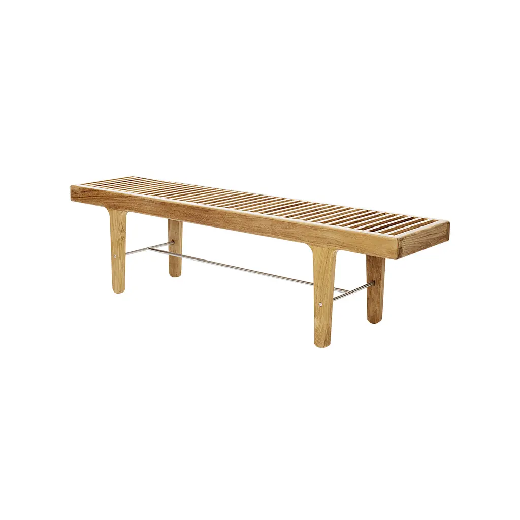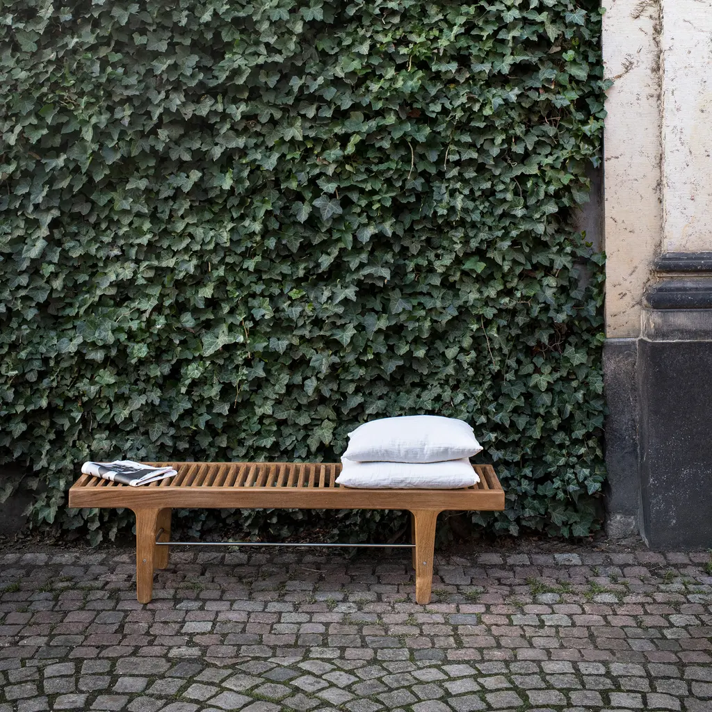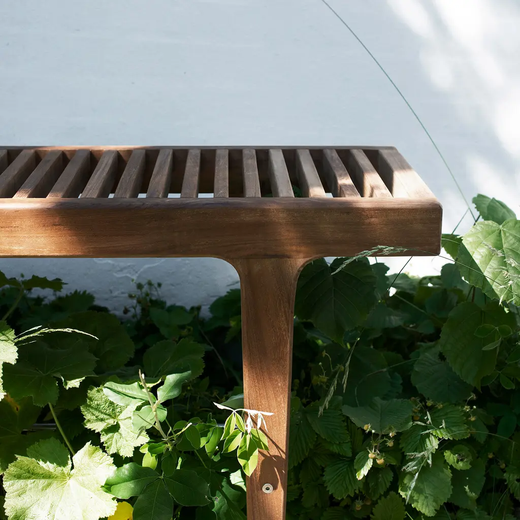 The low RIB bench from Sibast Furniture offers functional seating for outdoor spaces like patios, gardens, and balconies. Constructed from high-quality, untreated teak, this bench is designed for durability and versatility. The natural properties of teak allow the bench to age gracefully, developing a sophisticated silvery gray patina over time, although the original golden hue can be preserved with regular application of teak sealant. The bench’s modern lines and rounded details allow it to integrate seamlessly with various decor styles, making it a practical choice for additional seating or as a comfortable footrest.