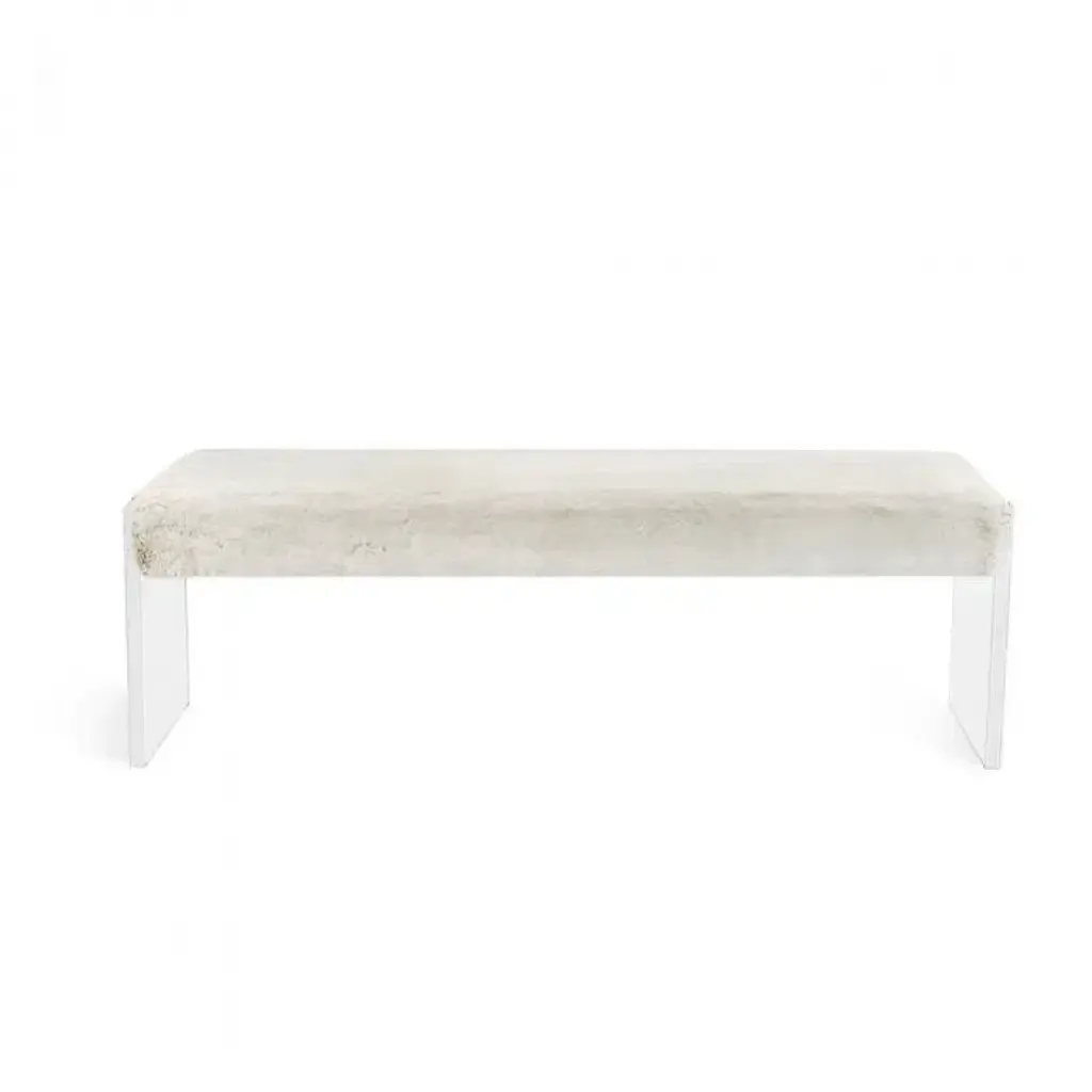 The texture of plush ivory faux fur plays off sleek, clear acrylic to make the Riley Bench a chic but totally versatile seating option that enhances any space.