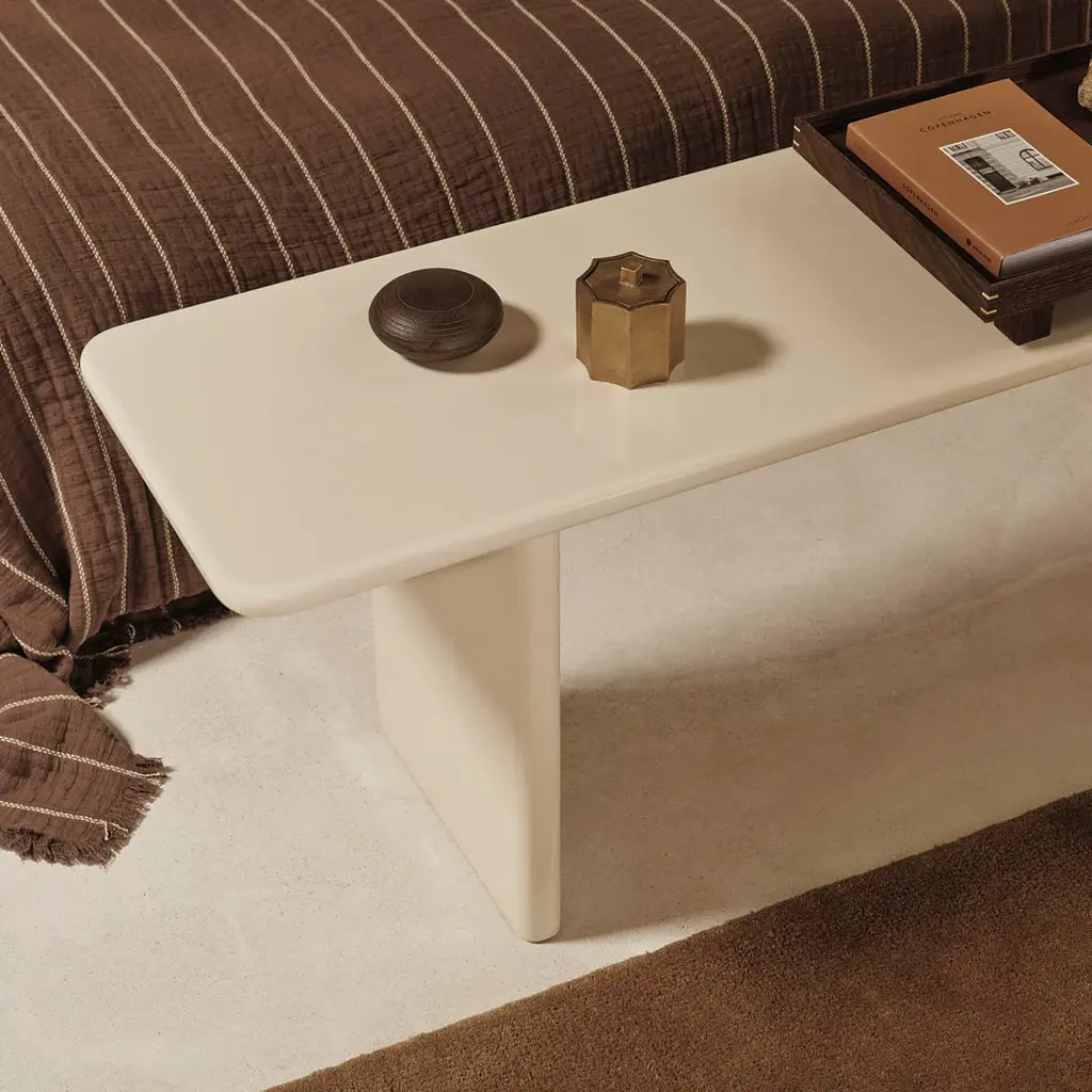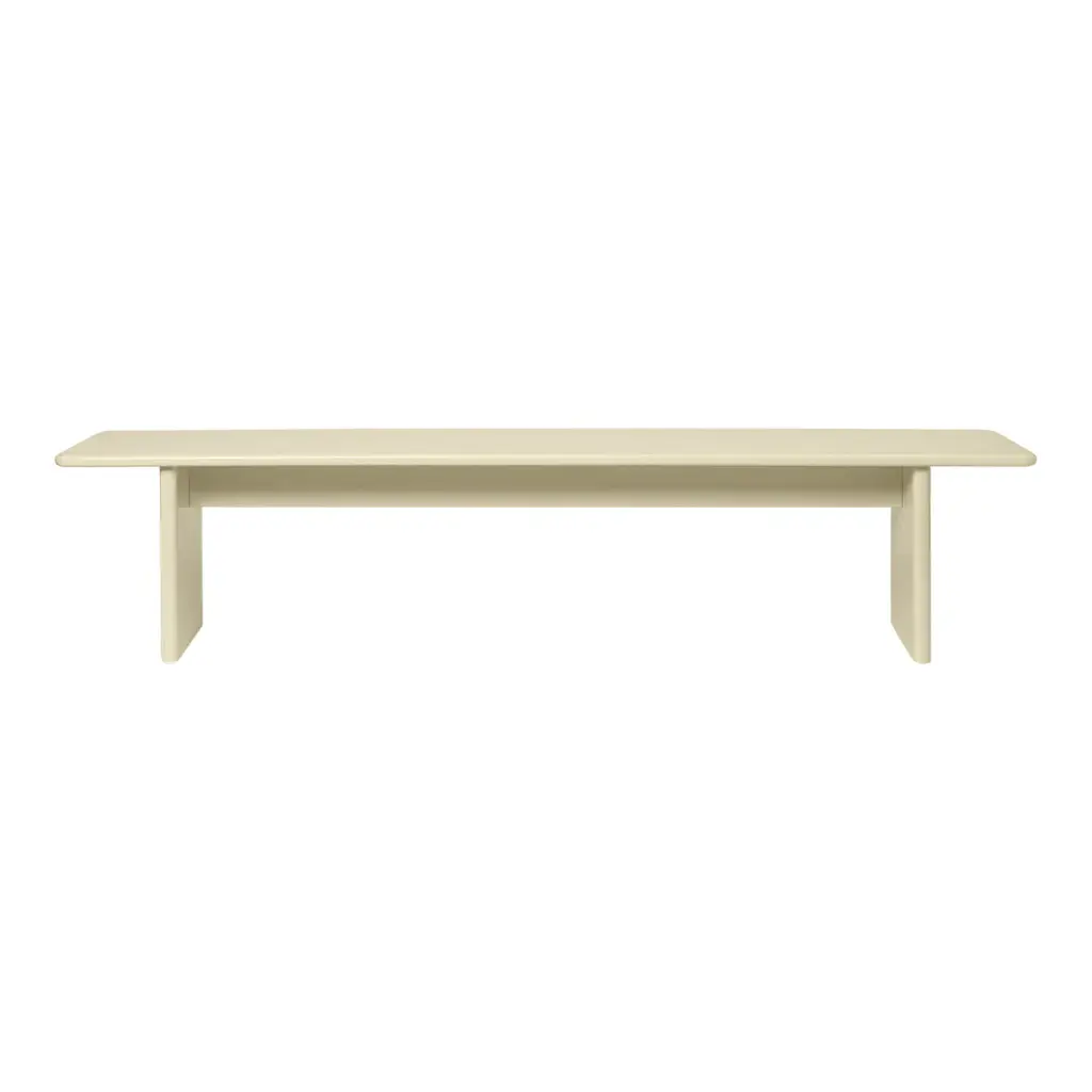 Add a touch of refinement to your home with the elegant Rink Bench. Extending the Rink Series, the bench is carefully fashioned from FSC certified MDF and finished with a vibrant, high-gloss lacquer. Its design features a classic table silhouette with smooth, rounded edges for a contemporary expression. The Rink Bench offers exceptional versatility, whether styled in the hallway or positioned at the foot of a bed. High-gloss is a sensitive surface. Do not put anything directly on the table top. Always use coasters or other protective items with a soft surface.