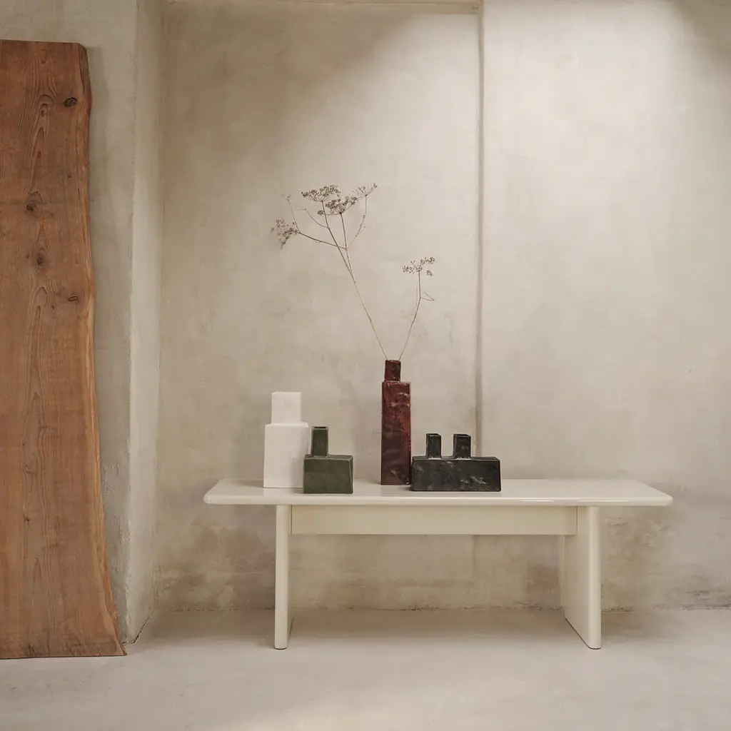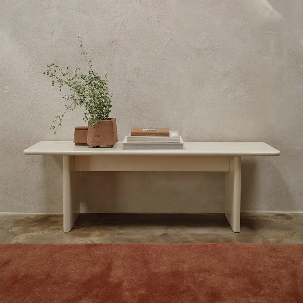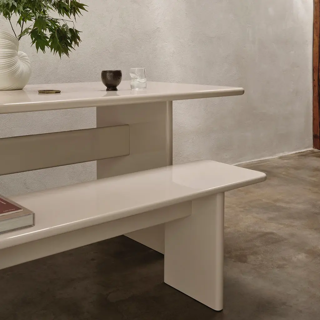 Add a touch of refinement to your home with the elegant Rink Bench. Extending the Rink Series, the bench is carefully fashioned from FSC certified MDF and finished with a vibrant, high-gloss lacquer. Its design features a classic table silhouette with smooth, rounded edges for a contemporary expression. The Rink Bench offers exceptional versatility, whether styled in the hallway or positioned at the foot of a bed. High-gloss is a sensitive surface. Do not put anything directly on the table top. Always use coasters or other protective items with a soft surface.