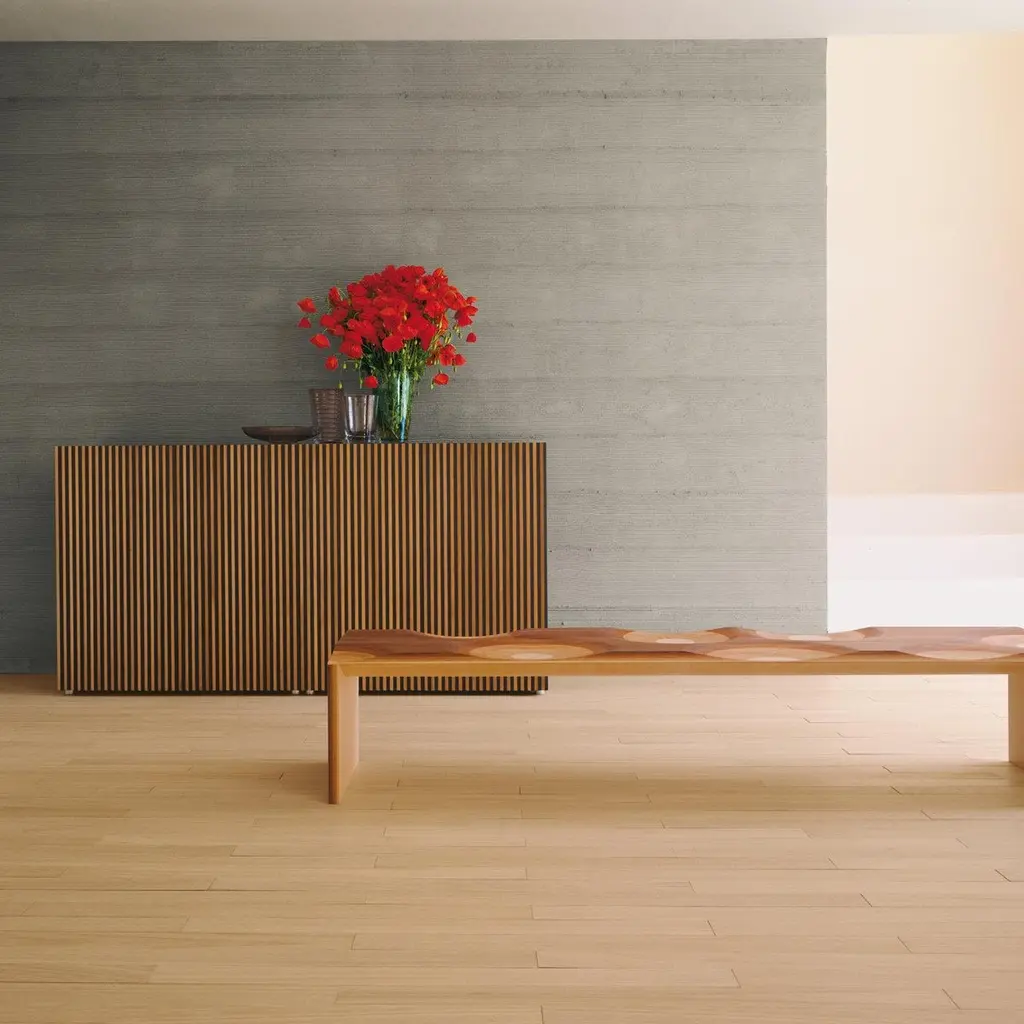 Ripples bench is the winner of the 2004 Golden Compass Award, boasting a unique, sculptural allure. Designed by Toyo Ito, this piece is skillfully crafted of five different types of wood (walnut, mahogany, cherry, oak, and ash), and features a seat reinforced with a hidden metal bar that firmly sustains it. Welcoming and masterfully carved, the seat is hand-finished creating an elegant and soft poly-chromatic effect. A veritable international icon of interior design, this piece is suitable for both residential and commercial interiors.