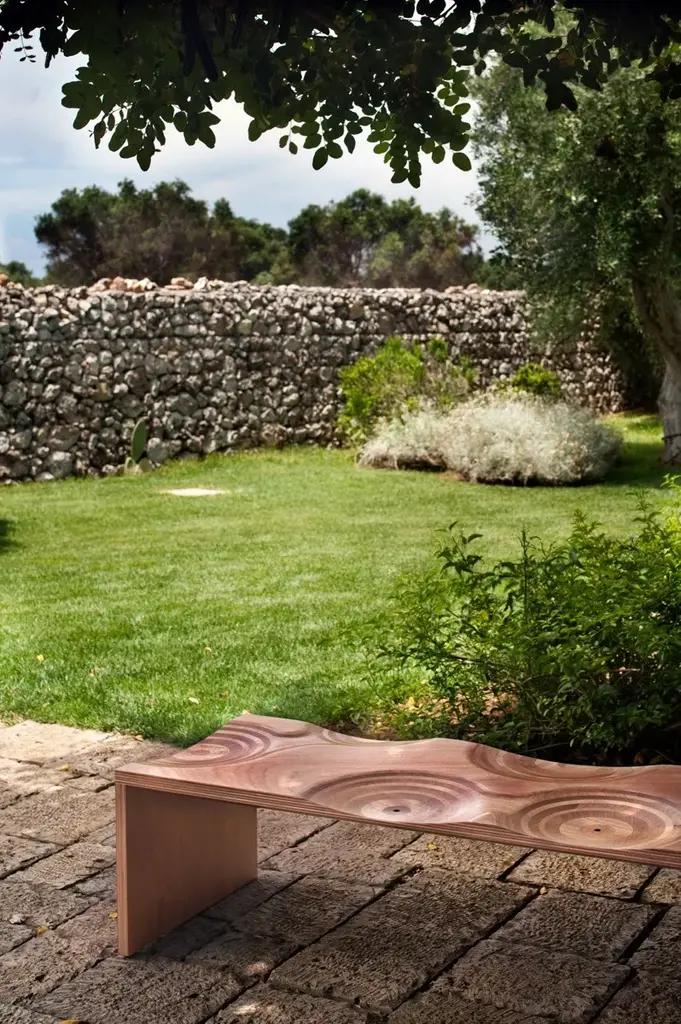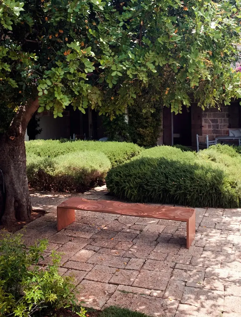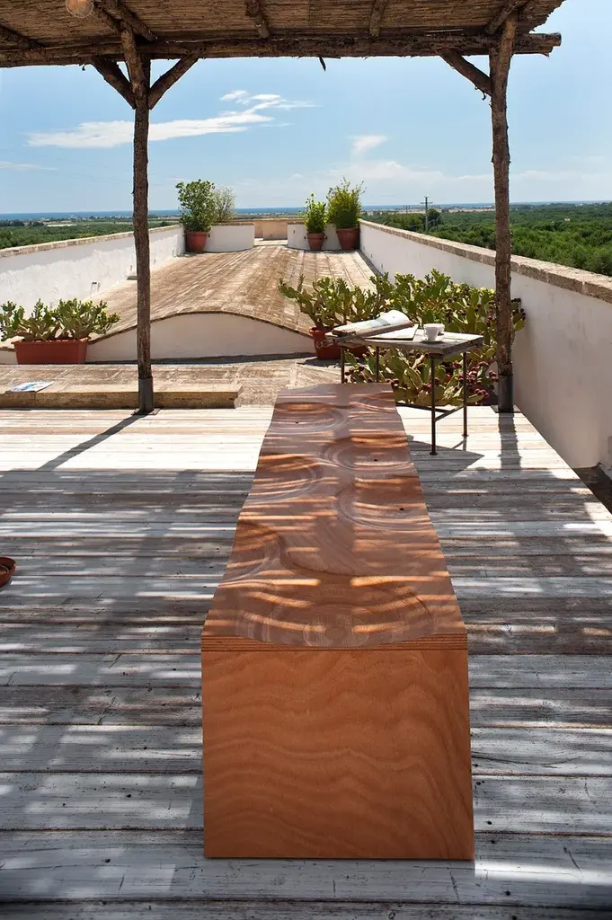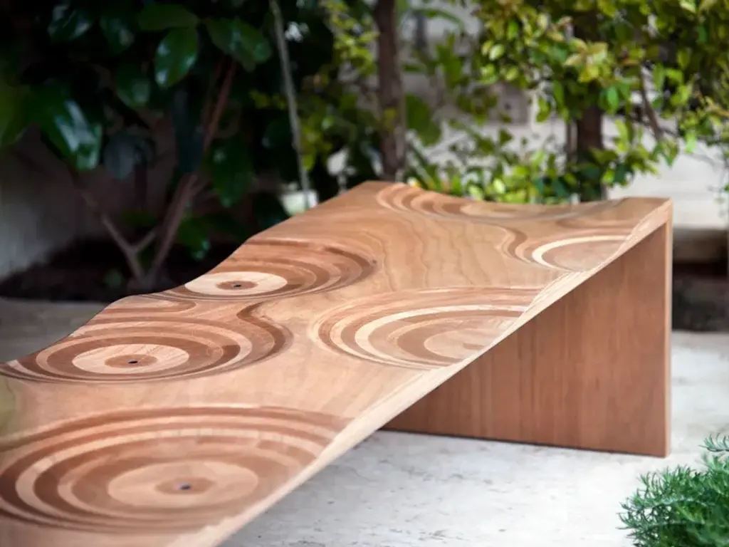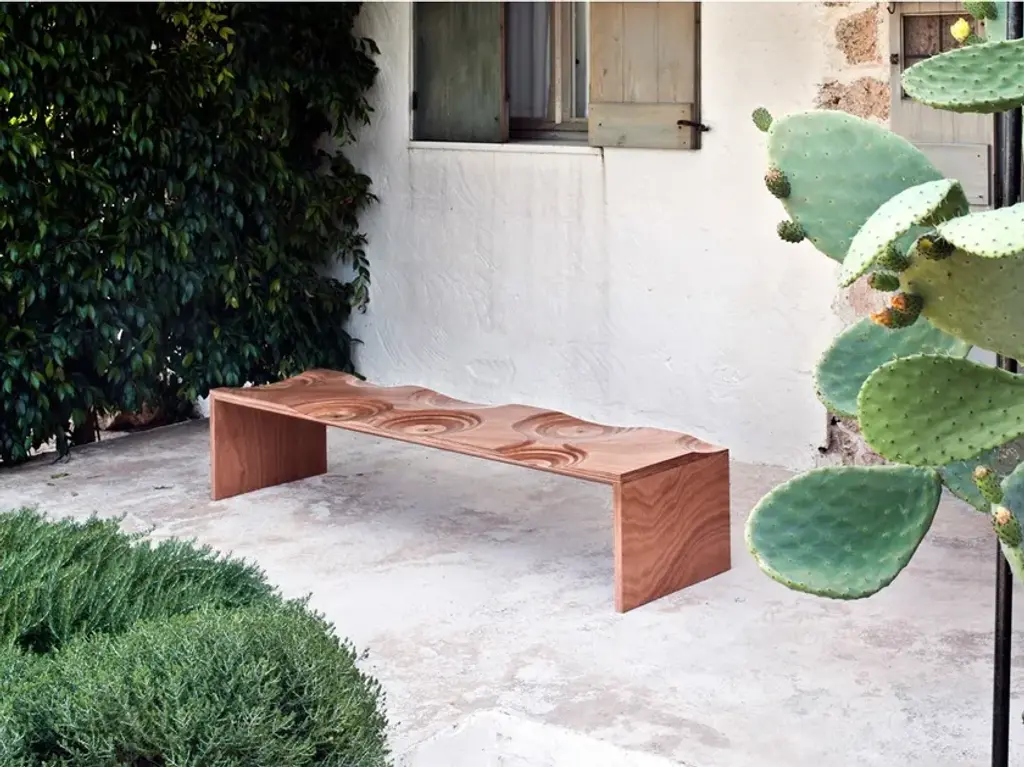 The Ripples bench, winner of the Golden Compass in 2004, changes its attire to become an outdoor bench by using okoume wood, also known as Gaboon, native of tropical West Africa and hence perfectly suited to withstand humidity or light rain. A recognised icon, its craftsmanship transmits the ever-delicate poetry of Toyo Ito.Bench made from okumè plywood composed of various superimposed layers with crossed veins. Water draining hole in three inner concave seats. Inner metal reinforcement. Lower panel made from birch plywood, hot-press curved and with beech veneer. Finish with outdoor coating. Adjustable feet.FINISHOkoume plywoodDIMENSIONS (LxDxH)cm 200x50x40 - 78.8” x 19.7” x 15.7”