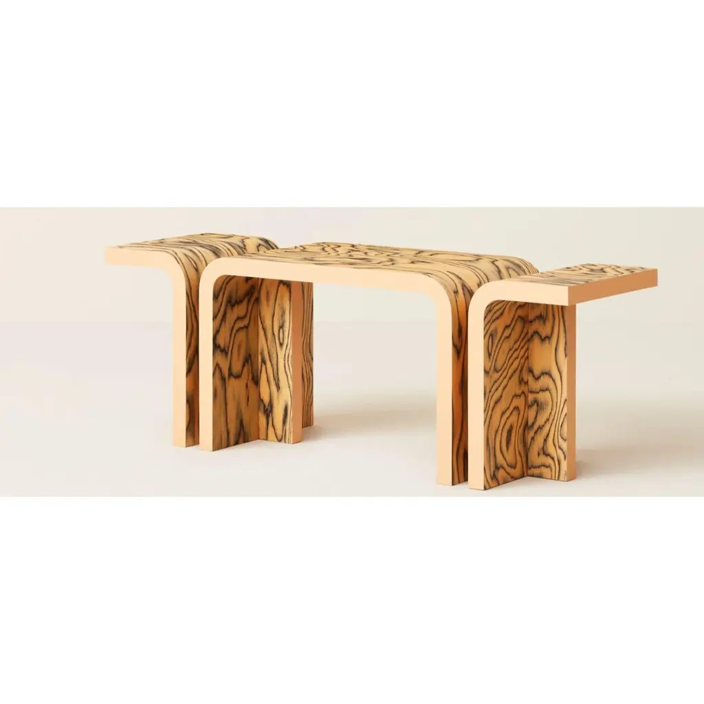 Rivelo Bench by Nikolai KotlarczykDimensions: D 128 x W 40 x H 45 cm. Materials: Folded plywood, Alpi veneer.Also available in other designs and dimensions.Nikolai Kotlarczyk is an Australian designer based in Copenhagen, Denmark since 2013. Graduating from the Queensland College of Arts in Brisbane, his experience in Australia was strongly influenced by his time with renowned design and manufacturing house Tait.Nikolai’s studio focuses on design pieces full of narrative. A strong connection with geography, history, materiality and rituals can be seen within his pieces. Working within a self-expressed decorative Minimalist style, his work aims to simplify the act of story telling through an honest pallet of materials, and bold forms.His work includes self initiated edition pieces and design pieces for manufactures, and has been shown in a number of international exhibitions including Milan, Paris, Stockholm, Copenhagen and Melbourne.Nikolai is a member of studio and workshop Hal 4 in Nordhavn, regularly contributes to Australian online publication Yellow trace, and was a co-founder of the culture-house in Copenhagen's inner north, Øen. He also works in various roles for design companies including Pulpo and New Works.