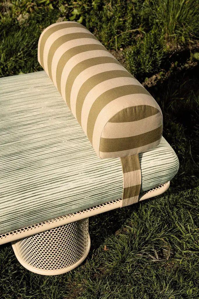 Riviera Bench 180cm In Lacquered Nude Metal & Stripes Fabric For Outdoors