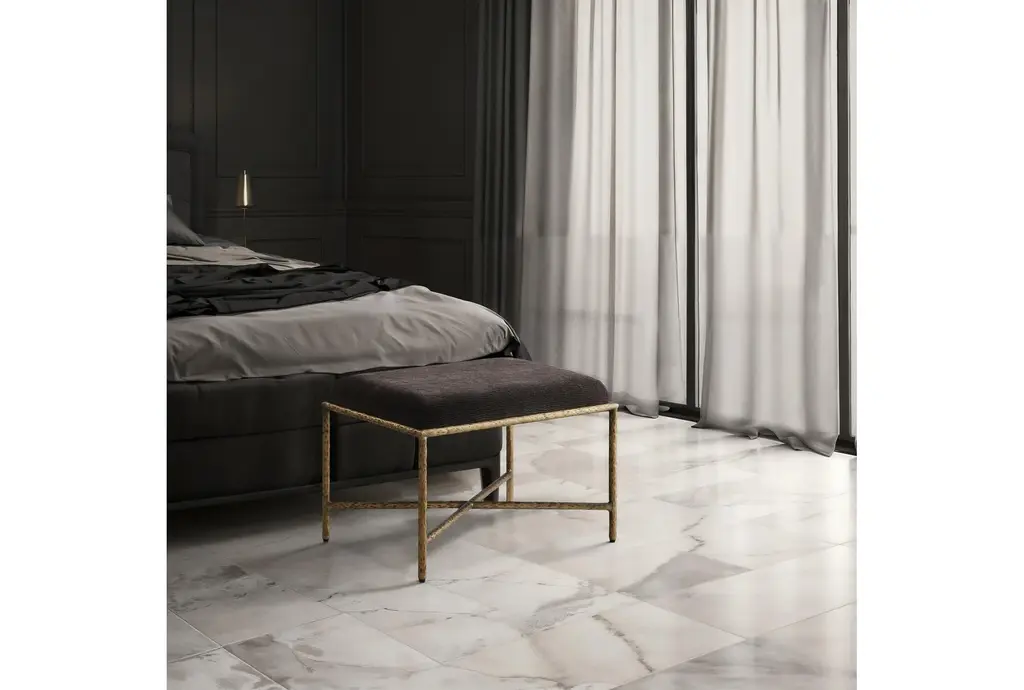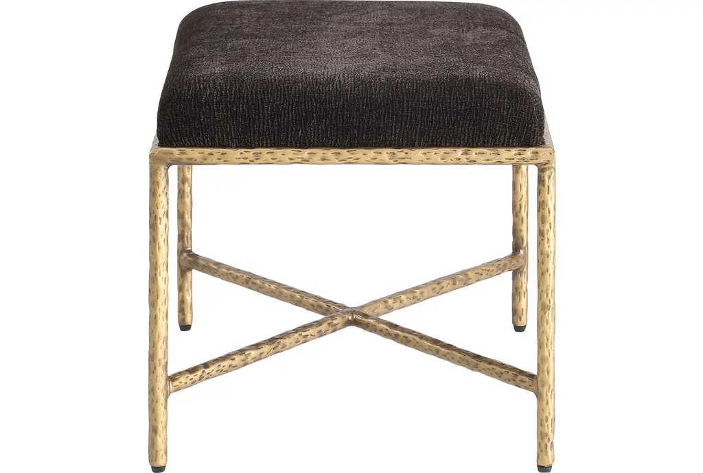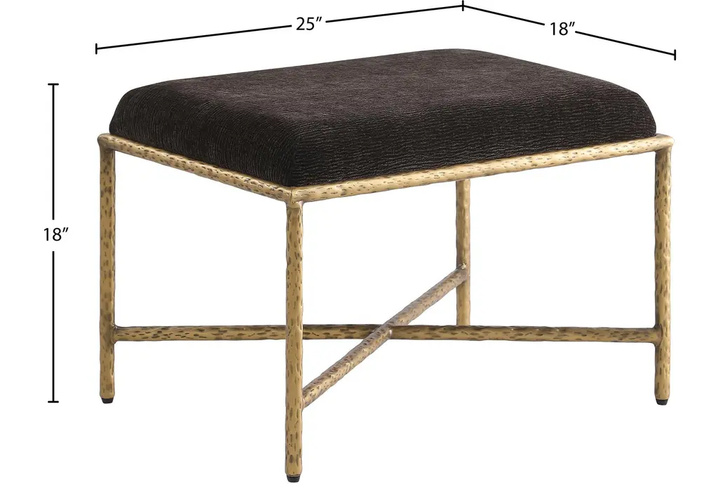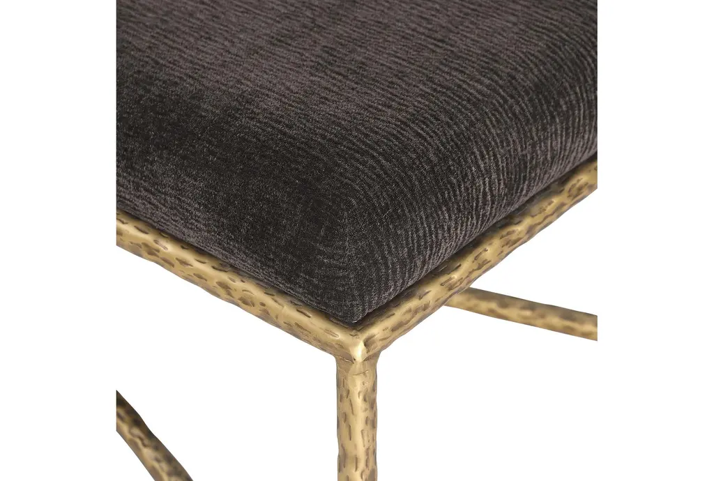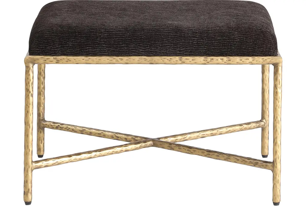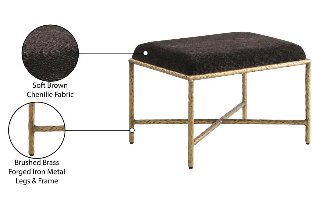 Rosaleigh Brown 25" Chenille Upholstered Bedroom Bench With Gold Metal Legs | Entryway
