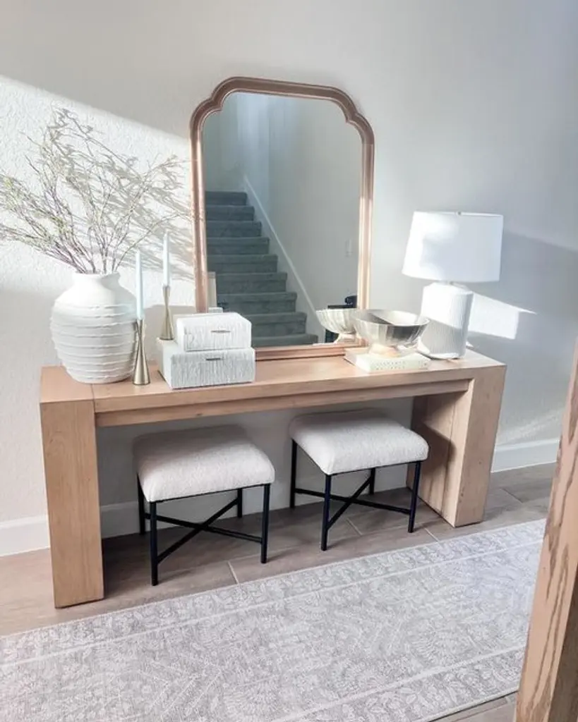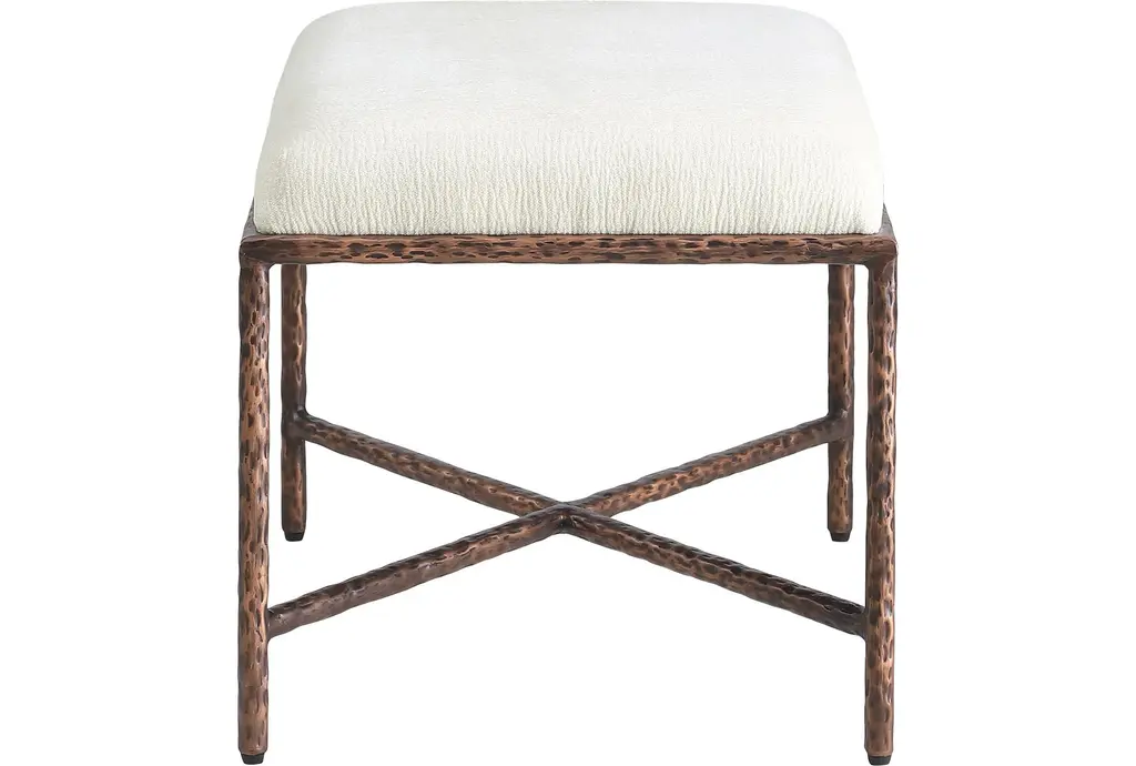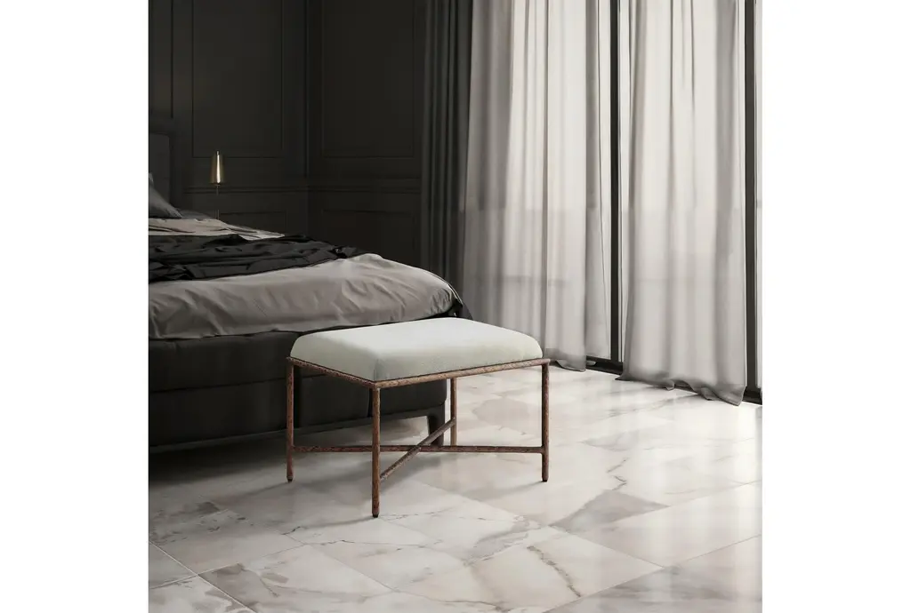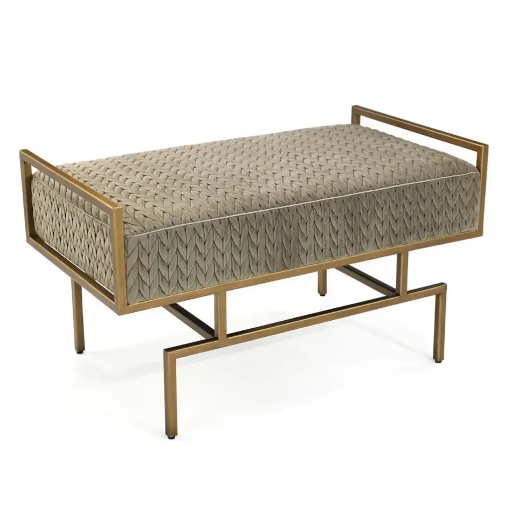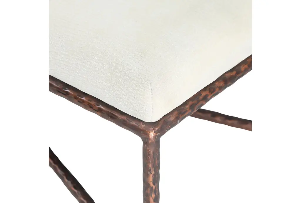 Add a touch of modern charm to your bedroom or entryway with the Rosaleigh Cream Chenille Upholstered Bedroom Bench. The bronze metal legs provide sturdy support, while the chenille fabric offers a soft and comfortable seating experience. Perfect for various settings, this bench blends seamlessly with contemporary and industrial décor styles.