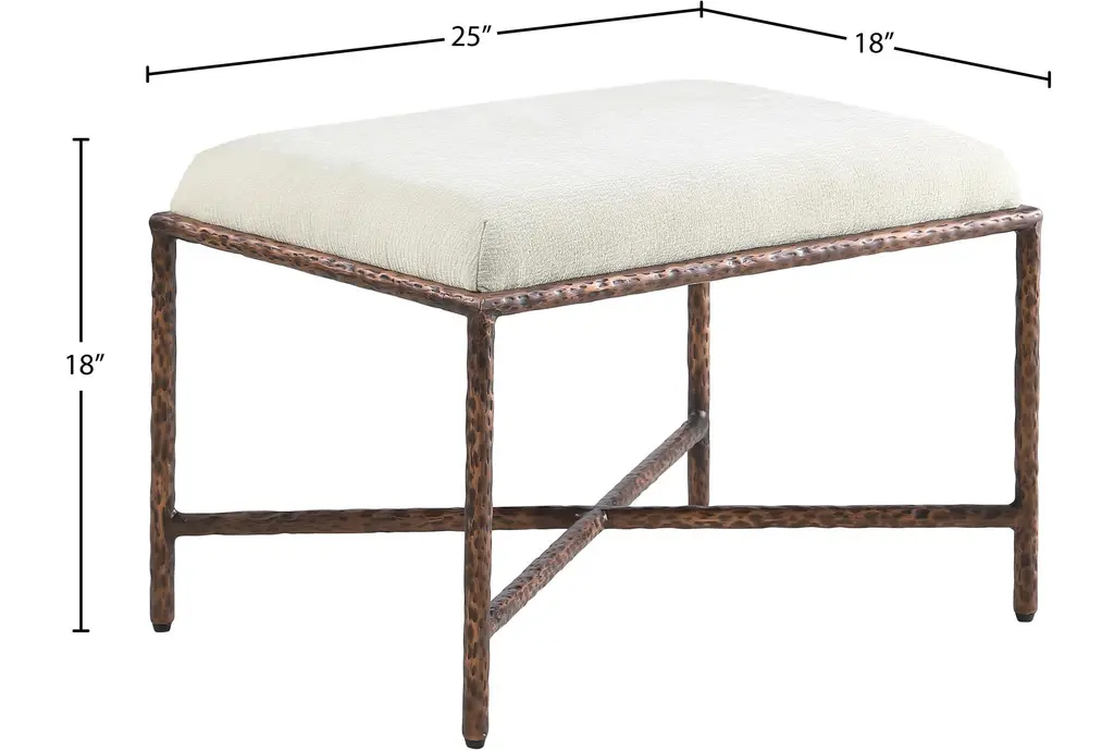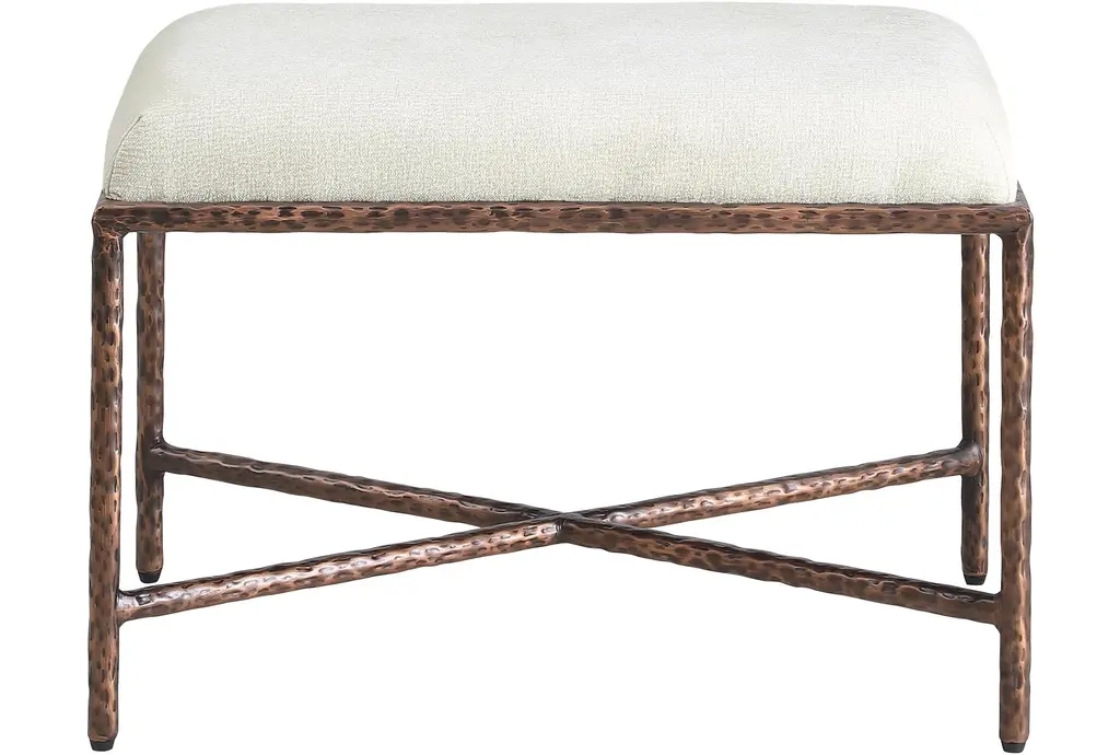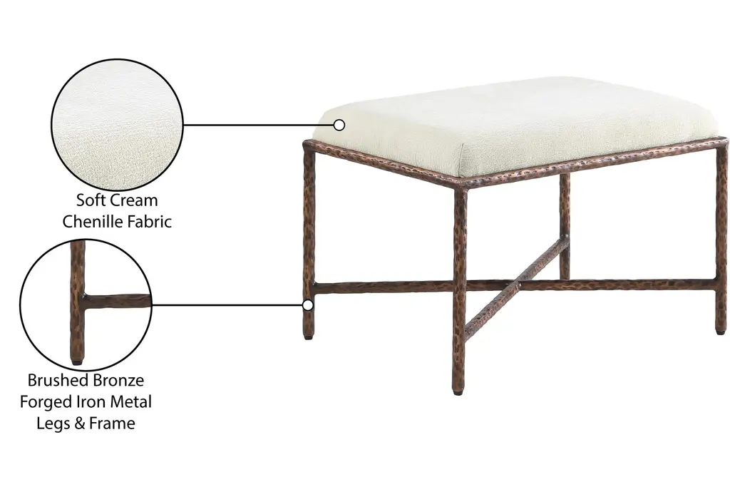Rosaleigh Cream 25" Chenille Upholstered Bedroom Bench With Bronze Metal Legs | Entryway
