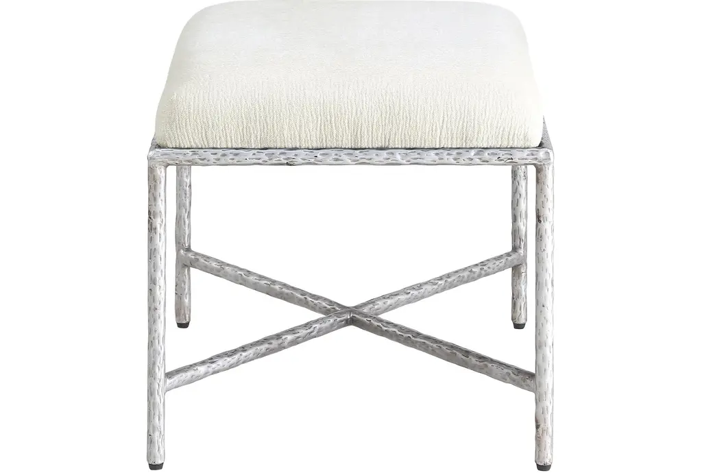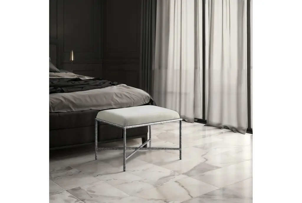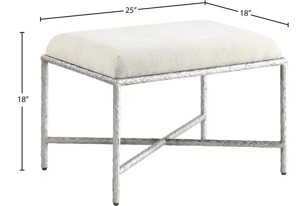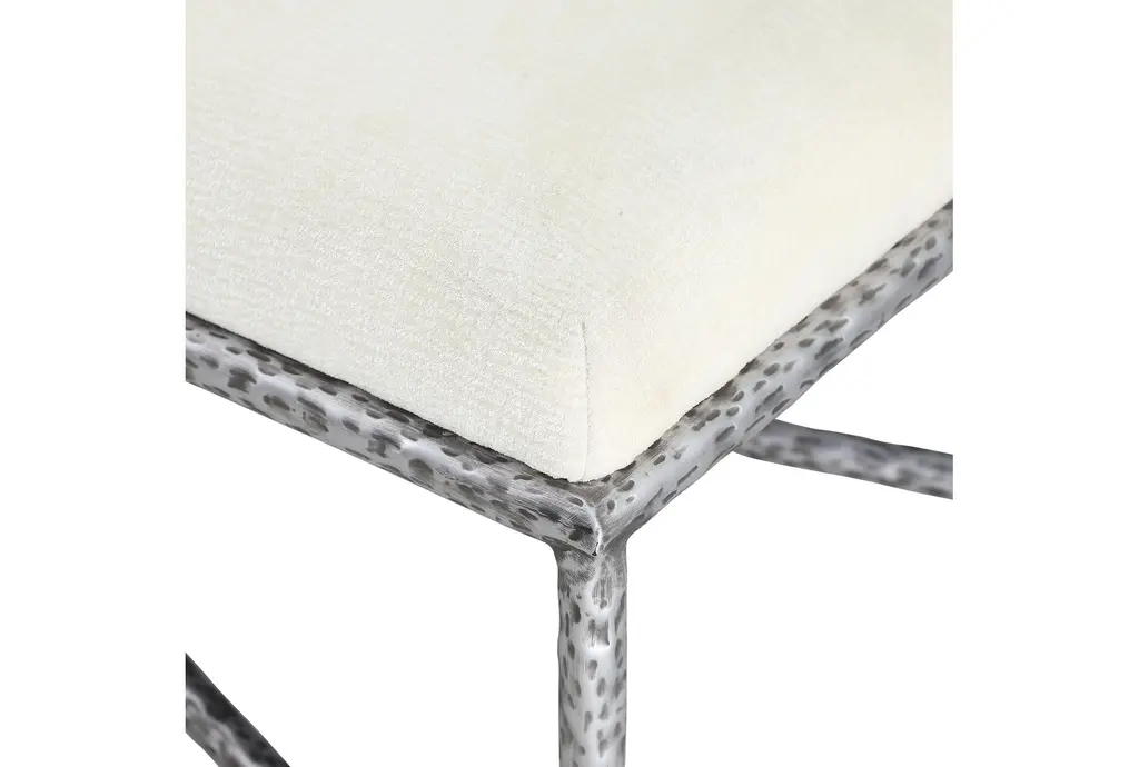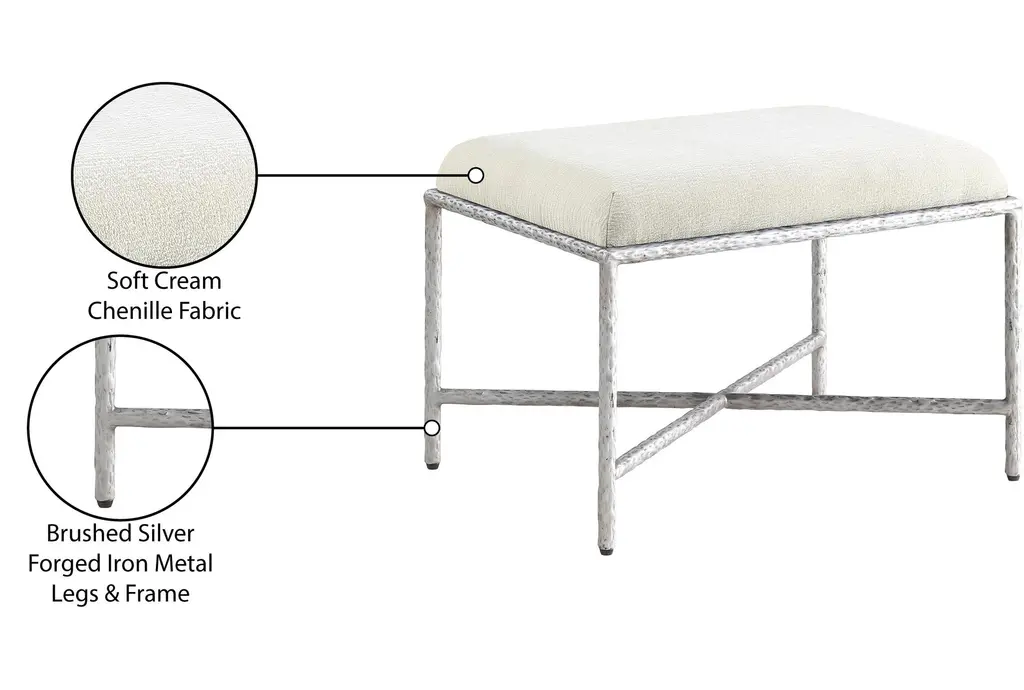 Rosaleigh Cream 25" Chenille Upholstered Bedroom Bench With Silver Metal Legs | Entryway