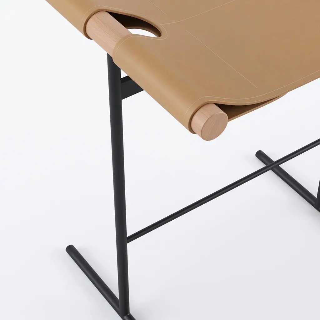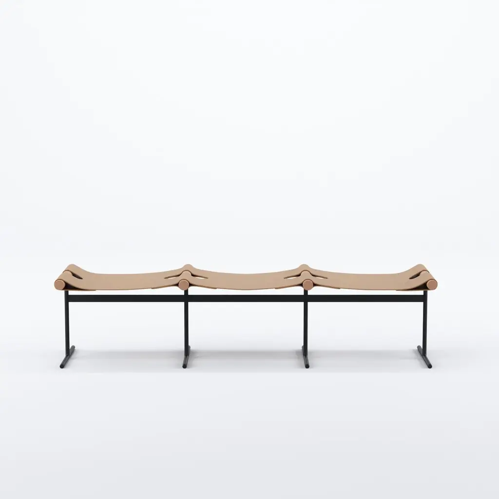 The Rosamaria Row Bench by Bruno de Carvalho is a striking testament to the designer’s ability to harmonize diverse materials with elegance and precision. In this sculptural seating piece, slender stainless steel rods form a clean, linear base that supports a rhythmic series of cylindrical wooden tubes. These wooden elements are tension-wrapped in leather, showcasing a refined level of craftsmanship inspired by traditional gaucho saddlery from southern Brazil.More than a functional bench, Rosamaria is a sophisticated exploration of material dialogue and structural clarity. The combination of cool steel, warm wood, and supple leather results in a piece that feels both contemporary and deeply rooted in cultural tradition. Ideal for residential or public spaces, the Rosamaria Row Bench brings tactile richness and design integrity to any setting.
