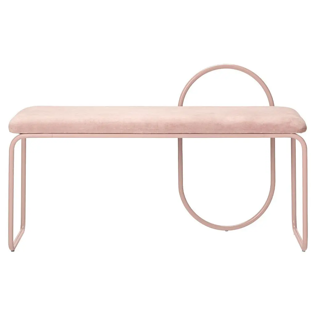 Rose velvet Minimalist bench Dimensions: L 110 x W 39 x H 68 cmMaterials: Cotton velvet, steelThe collection includes benches, chairs, shelves and mirrors in a wide variety of sizes.