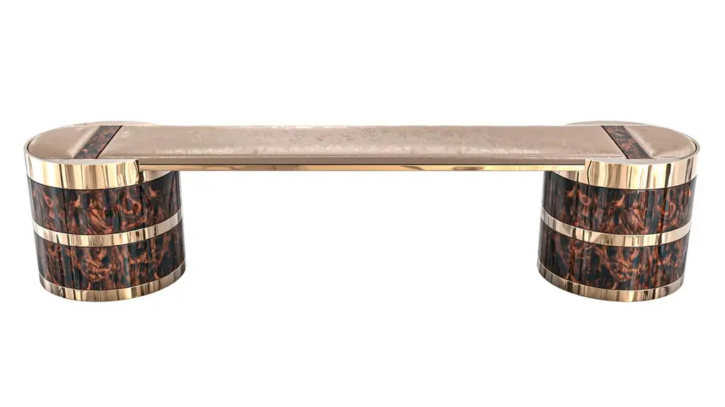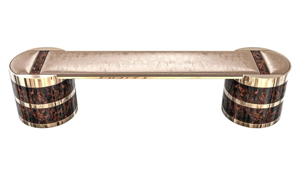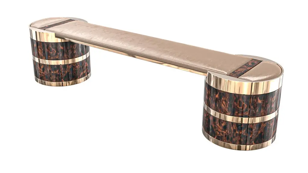 "Rossetto" Bench With Burl Walnut And Bronze Details, Hand Made, Istanbul