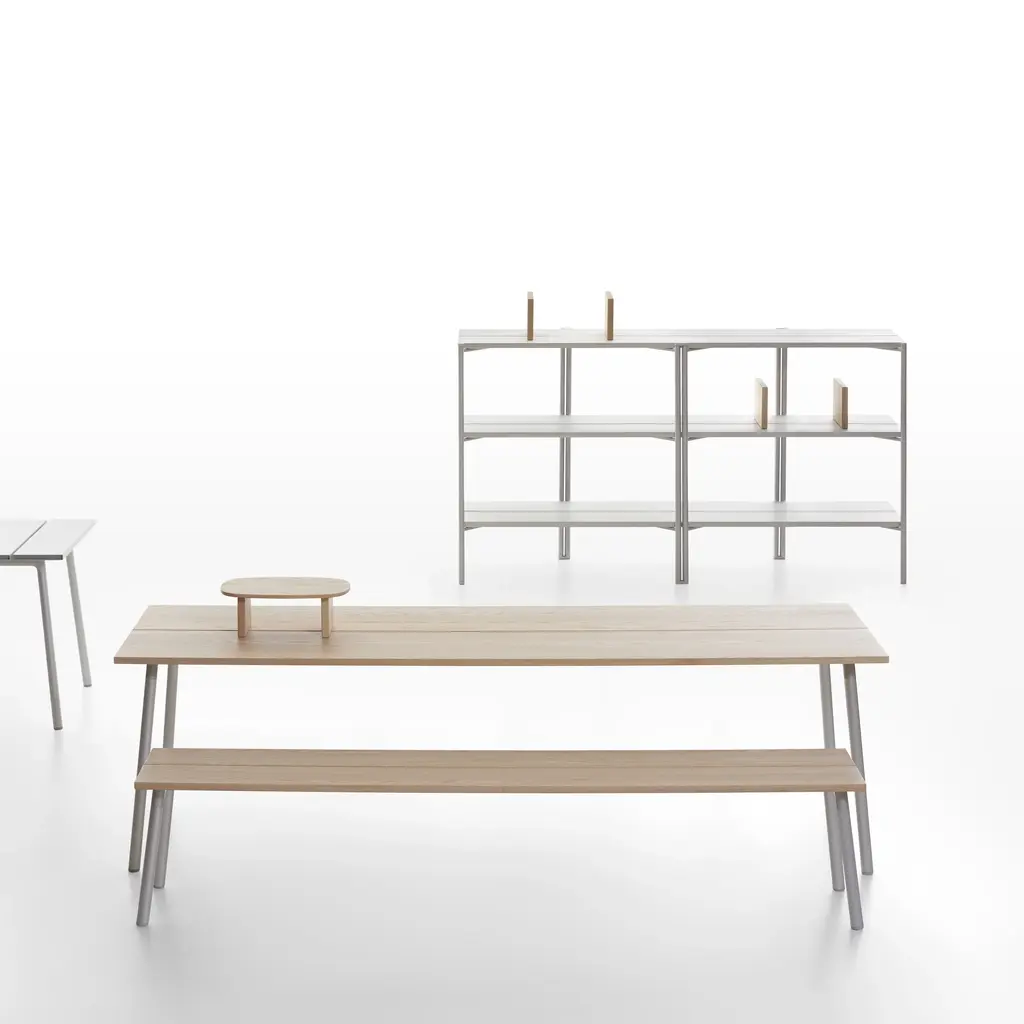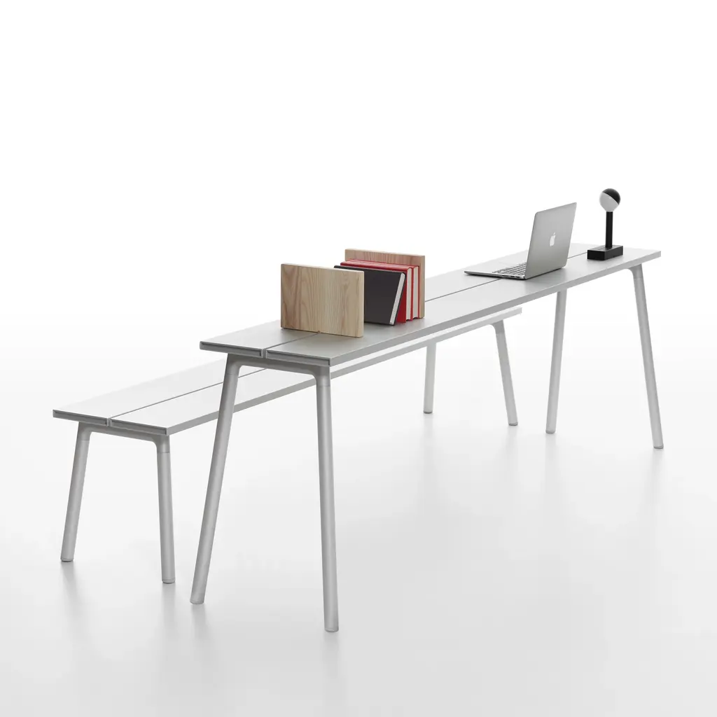 Run is a collection of tables, benches and shelves by Sam Hecht and Kim Colin, designers of the simple and no-nonsense. Run effortlessly finds balance in both indoor and outdoor landscapes suited for meeting, eating, learning, sharing and working. Made of responsibly selected, sustainable materials and engineered to last, Run is right for a multitude of uses at home, for hospitality and in the workplace. Features