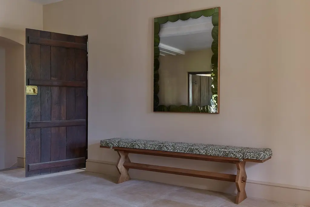 A contemporary bench with geometrically shaped legs inspired by the designer Marcel Coard.Traditionally constructed in solid oak in either a dark, medium or light finish.COM: 3m / 3.3ydCOL (all sizes): 1 hide. Based on an average hide size of 50sq/ft.