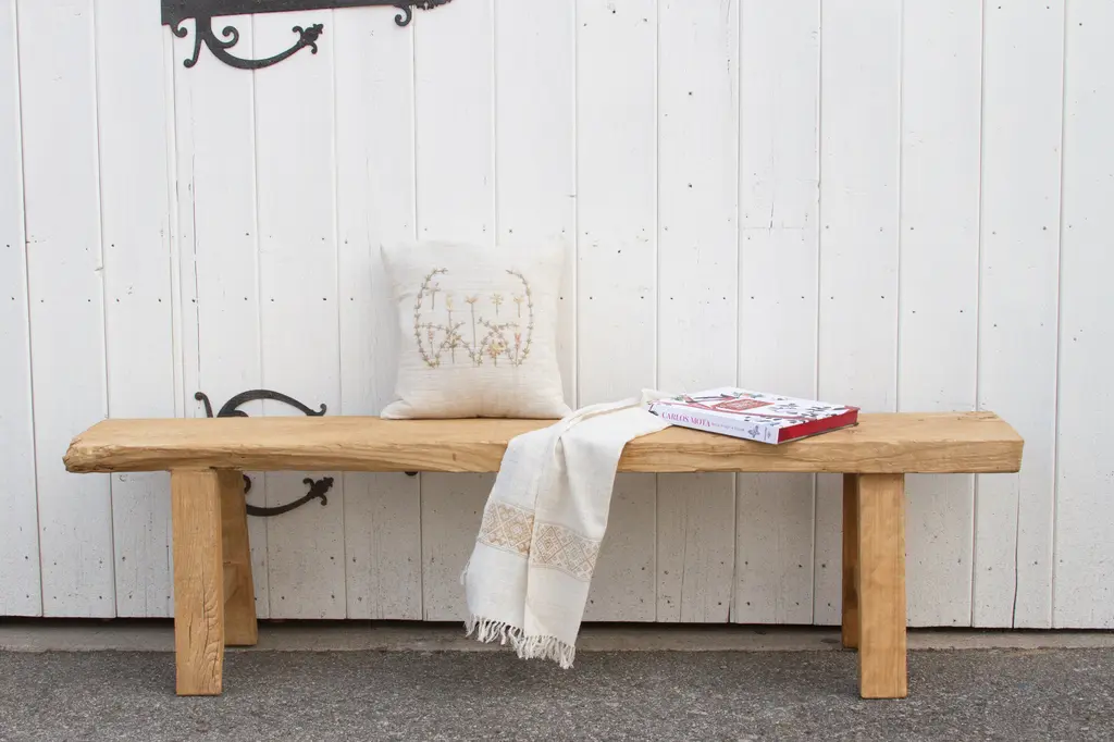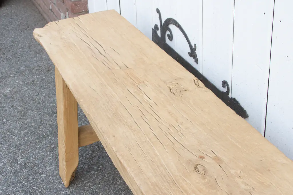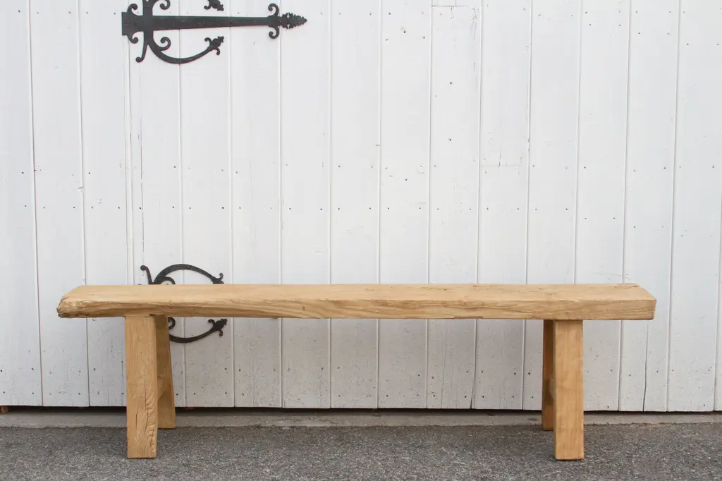 Rustic Bleached Wood Farmhouse Bench