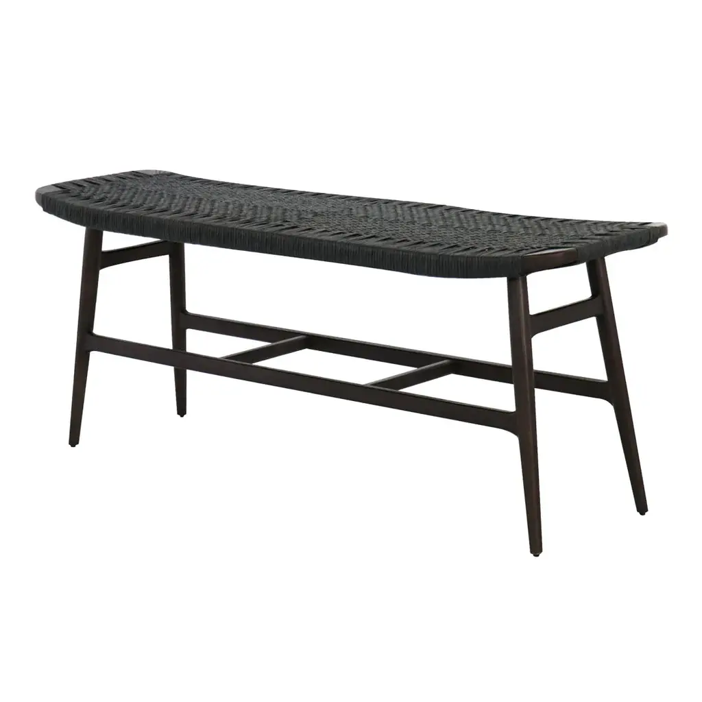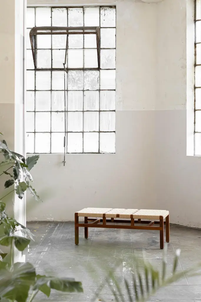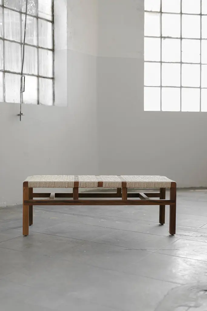 S Collection wooden bench woven with jute available in oak or tzalam wood.