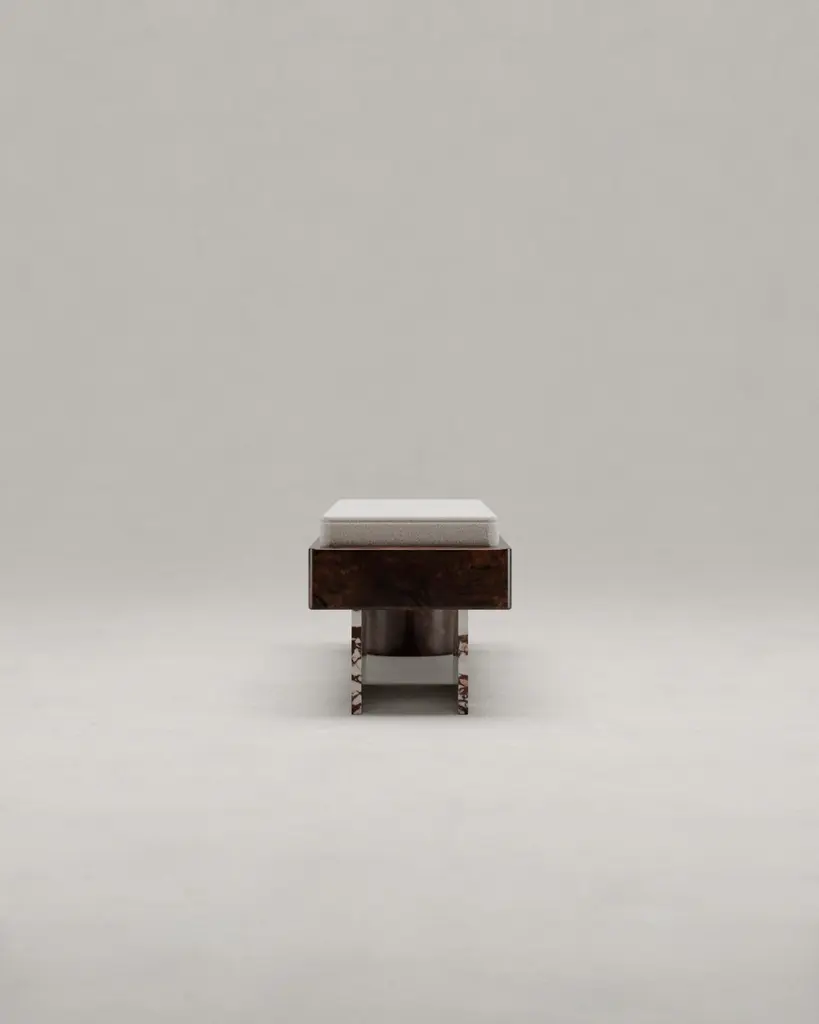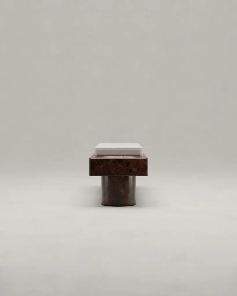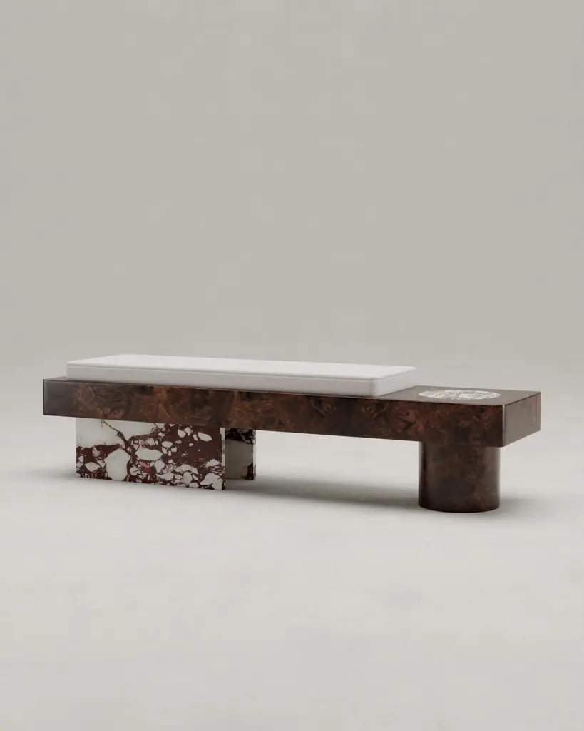 Salvante BS1 Bench by Piotr DąbrowaUnique PieceDimensions: W 160 x D 40 x H 40 cmMaterials: Calacatta Viola marble, walnut burl.Also available: Calacatta marble, Rosa Peralba marble.Salvante collection is a play between shapes, materials & colours. Round and rectangular forms come together to create harmonious whole and to satisfy functional and poetic needs. Salvante collection had its premiere during 2021 MILAN DESIGN WEEK in Motel D, Diorama’s creative space, located at Viale Caldara, 13.Piotr Dabrowa (1990). Multidisciplinary Designer focused on the collectible design of lighting & furniture.He creates imagination-driven products in modern, clean aesthetics & functional form. The works convey a deep love for the art of living and give its users a unique experience, sensual pleasures and constitute the visual character of an interior. Surreal & forward-looking still-life visuals showcasing the products are complementing their uniqueness by giving them a new dimension in the digital world.From 2011 he was working in the Graphic Design field and later in the product design field in Poland and in China. To focus on his ideas, he established Studio-Dabrowa in 2020. He works on developing, bringing to life collectible designs and cooperating with factories in Asia and in Europe while completing his Master’s Degree at the Academy of Fine Arts in Wroclaw. His works are available through selected Galleries.