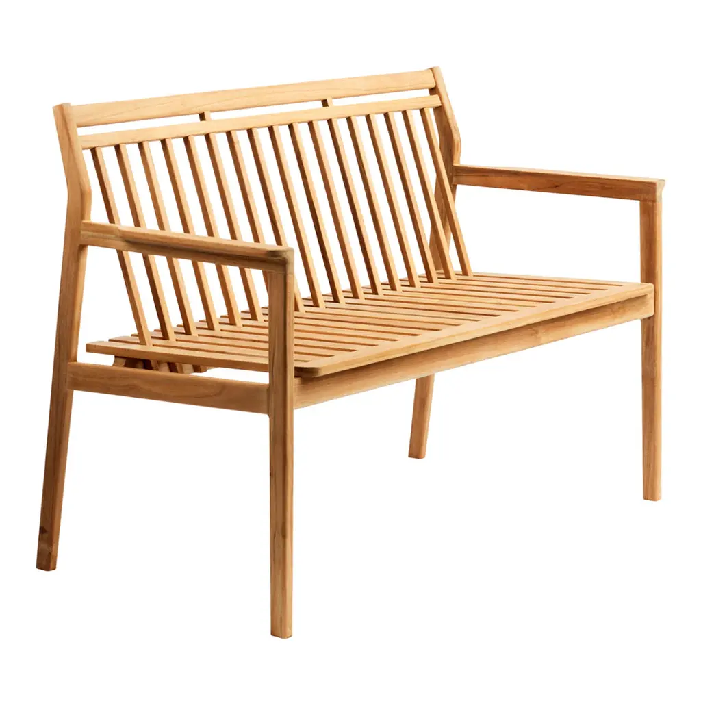 The garden bench privdes some extra good seating at the garden table. Here you can "bench" the children for the small and big moments of the summer. And you can take the bench to a corner in the garden and enjoy it from a whole new angle. The bench originates from FDB's design tradition and is made of natural oiled teak with a focus on many small craftsmanship and design details. It fits together with the large garden table M2 and - of course with the "little siblings" - the two chairs in the series.