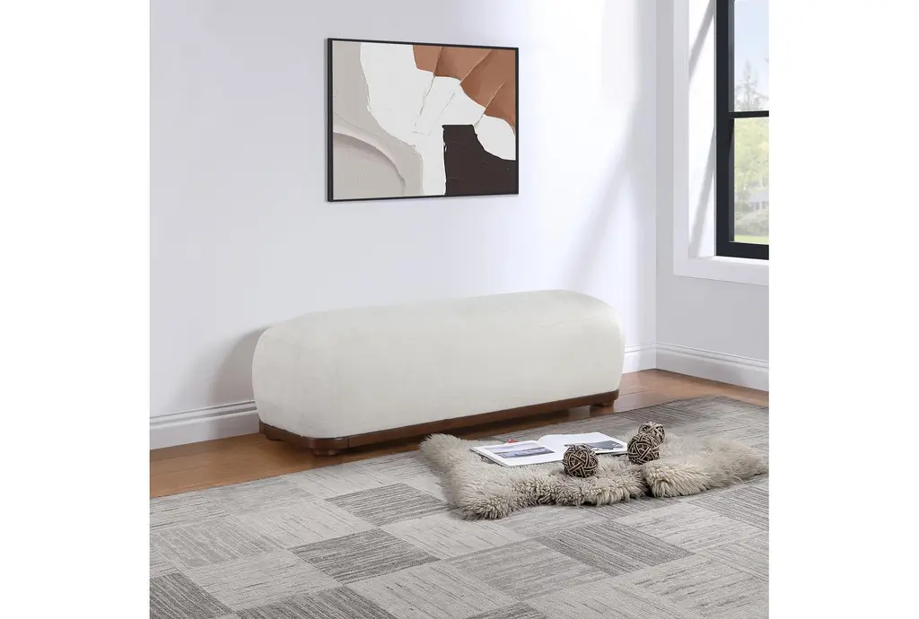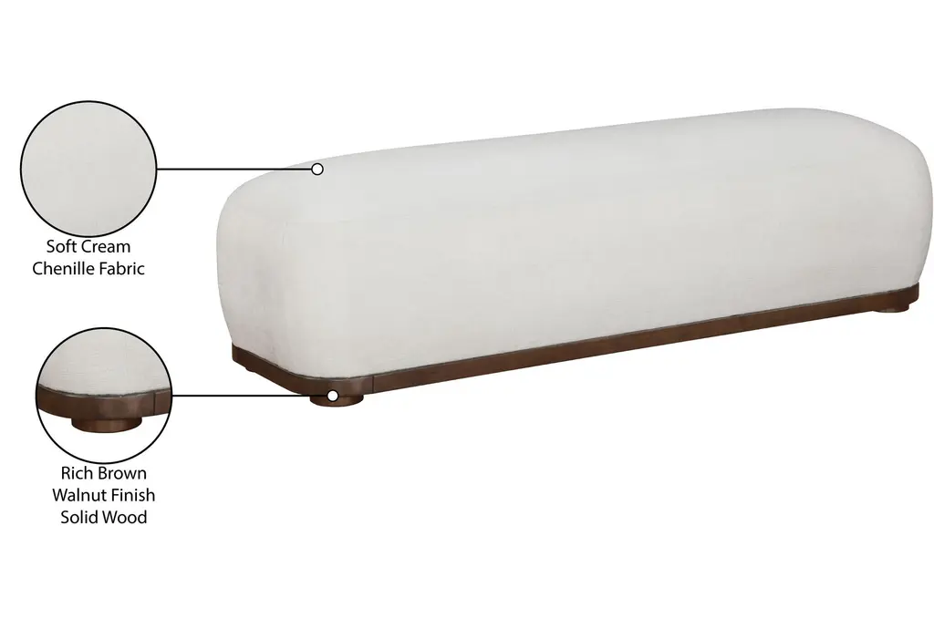 Sarai Cream Chenille Upholstered Bedroom Bench | Entryway