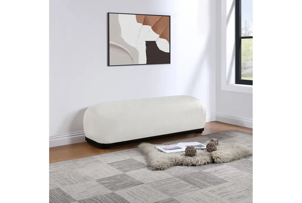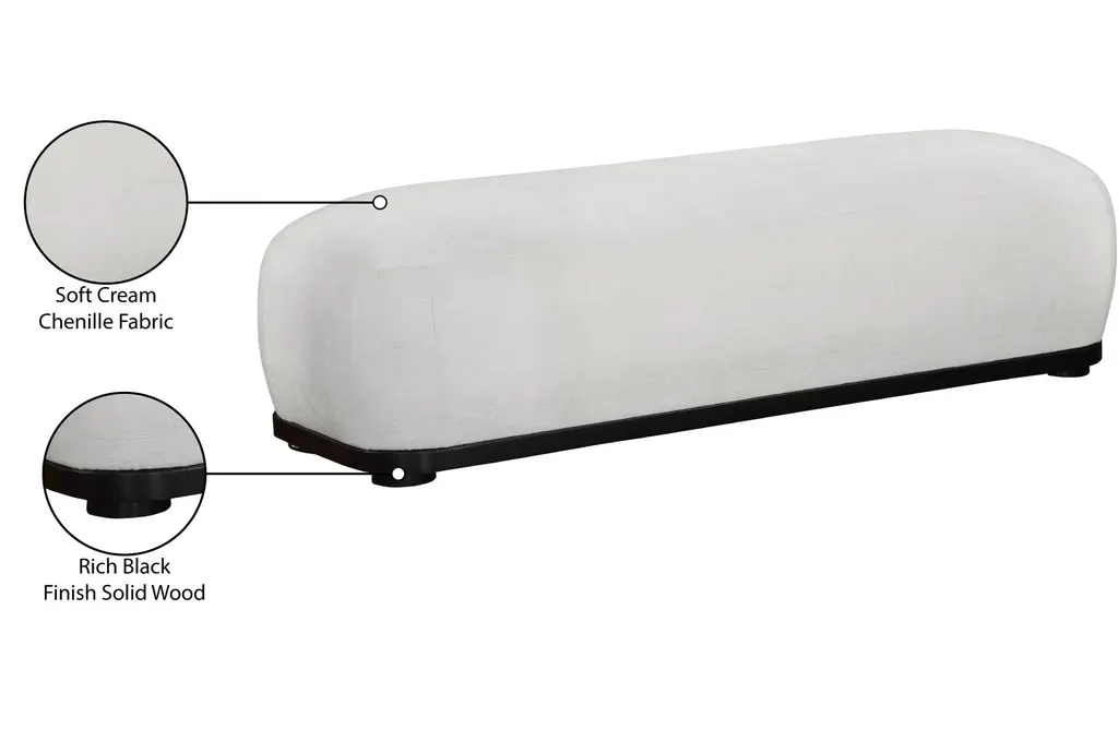 Sarai Cream Chenille Upholstered Bedroom Bench | Entryway
