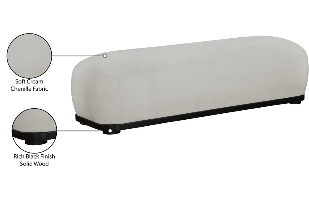 The Sarai Grey Chenille Upholstered Bedroom Bench is a perfect blend of modern and mid-century modern styles, offering both comfort and elegance to your bedroom decor. Upholstered in soft grey chenille fabric, this bench provides a luxurious seating experience. The rich black finish and solid rubberwood construction ensure durability and a timeless aesthetic.