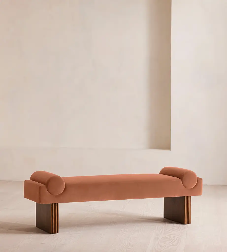 Saskia Cognac Polyester Upholstered Bedroom Bench | Entryway