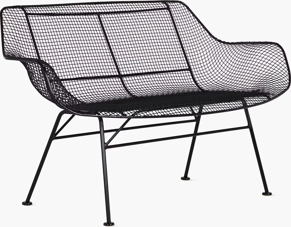 When we heard that Woodard was bringing the Sculptura Collection (1956) back into production, we jumped at the chance to partner with them on its return. Sculptura is inspired by the airiness of wicker but handcrafted in sturdy iron mesh that's treated with rust inhibitors to withstand the elements. The Sculptura Bench is molded to cradle the contours of the human form, making it a comfortable seat for outdoor spaces.