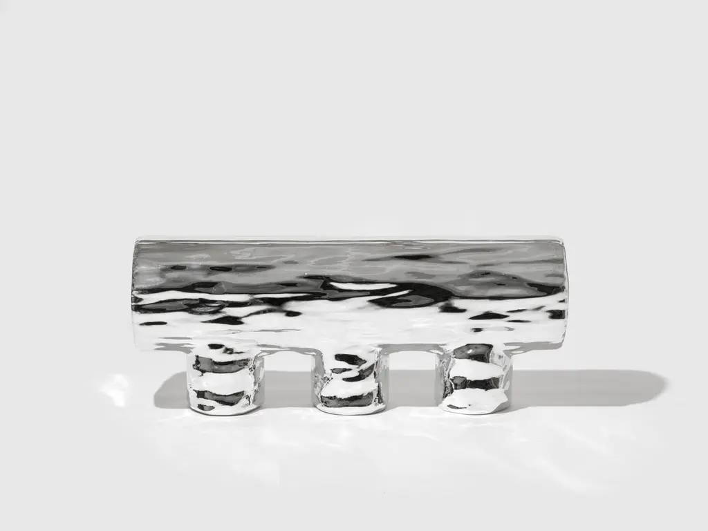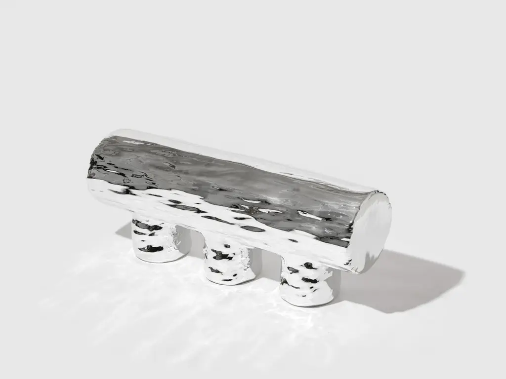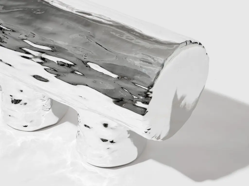 Sculptural bench by Dongwook ChoiCrest and Trough seriesDimensions: 125 x 39 x 50 Materials: FRP, chrome coatedThere may be a visual difference in color depending on the finish condition.When two waves encounter each other, they make ‘interference pattern’. Crest and trough create a resultant wave of greater, lower or the same amplitude in this superposition and these periodic pulses occur some natural patterns of beauty which we can discover in manifold nature circumstances.Crest and trough series are my physical works inspired by these interference patterns in waves.Dongwook Choi studied at Konkuk university, Seoul for BFA, majoring metal craft.Now he is working with a base in Gyeonggi-do, South Korea.His work is always experimental and have a great interest in scientific phenomena,patterns of nature, and organic shapes or forms with manifold materials.It mainly uses functions used in computer modeling tools and motion graphicsfor ambiguity and detail of work.I organize things what I like in the proportion that I prefer, and then I go through the process of transferring them onto my works.