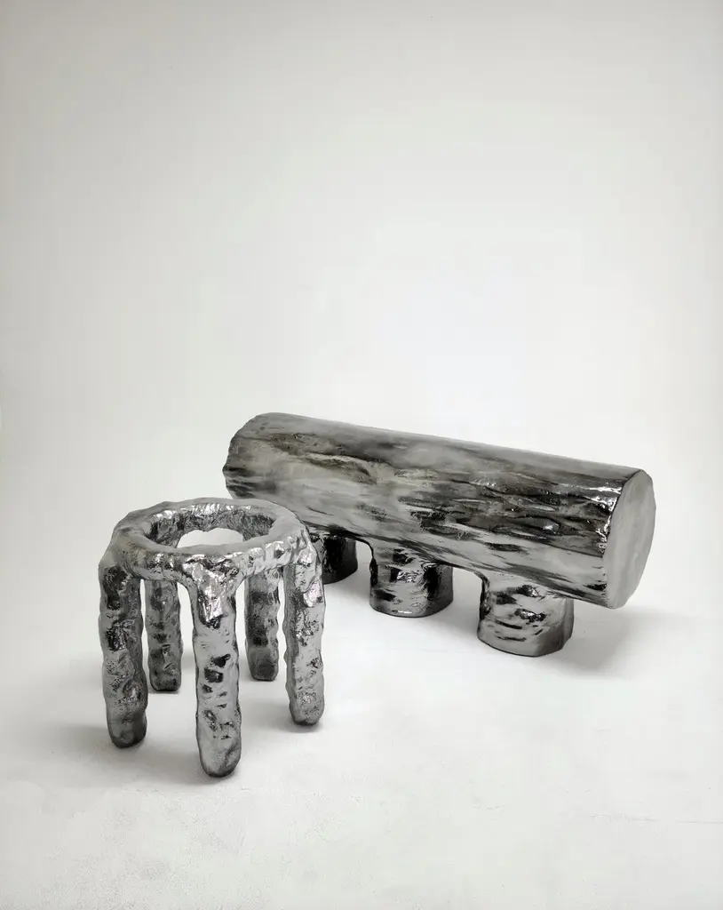 Sculptural bench by Dongwook ChoiCrest and Trough seriesDimensions: W 125 x D 39 x H 40 cmMaterials: Urethane coated EPS, silver coatedThere may be a visual difference in color depending on the finish condition.When two waves encounter each other, they make ‘interference pattern’.Crest and trough create a resultant wave of greater, lower or the sameamplitude in this superposition and these periodic pulses occur some naturalpatterns of beauty which we can discover in manifold nature circumstances.Crest and trough series are my physical works inspired by these interferencepatterns in waves.Dongwook Choi studied at Konkuk university, Seoul for BFA, majoring metal craft.Now he is working with a base in Gyeonggi-do, South Korea.His work is always experimental and have a great interest in scientific phenomena,patterns of nature, and organic shapes or forms with manifold materials.It mainly uses functions used in computer modeling tools and motion graphicsfor ambiguity and detail of work.I organize things what I like in the proportion that I prefer, and then I go through the process of transferring them onto my works.