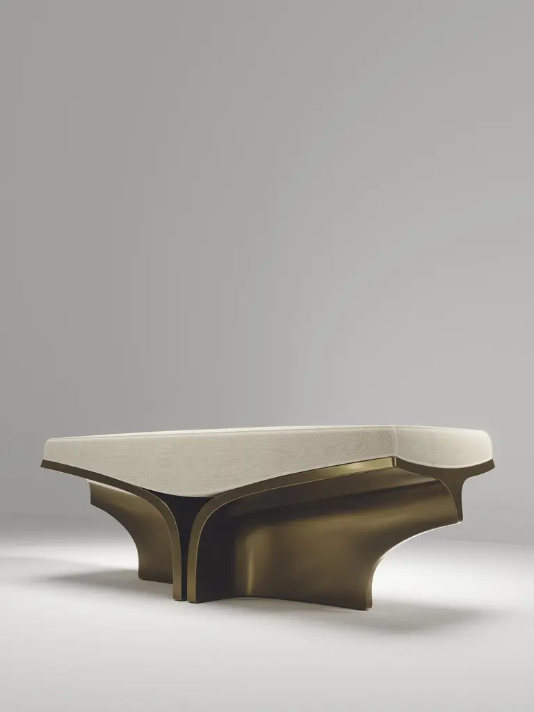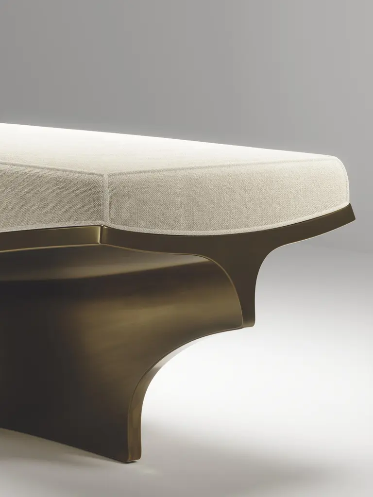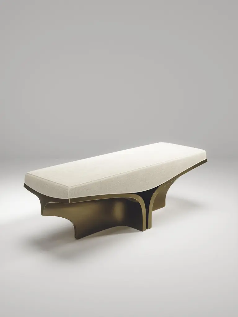 The Paris based label has distinguished themselves since their launch, with their iconic use of shagreen mixed with brass and other exotic materials. All furniture is handcrafted by skilled artisans, ultimately making each piece unique, designed in Paris and produced in the Philippines.Patrick Coard Paris expands on his unique and beautiful sculptural object collection with a furniture line. The Caudal capsule explores creating organic lines and sculptural dimensions through a monolithic structure. The pieces are entirely handcrafted in bronze-patina brass. These pieces are suited for indoor and outdoor purposes. The upholstery is available in cowhide, linen, velvet or COM. This listing is priced for the Caudal Bench in white linen. See images at end of slide for more finishes and more of his incredible sculptures.The dimensions of this piece are 143 x 46 x 45 cmAll Patrick Coard Paris pieces are handmade by artisans, ultimately making each piece unique. Wipe clean with soft dry cloth.Patrick Coard Paris - an Irish/Scandinavian designer, threw the gauntlet down with an awe inspiring collection of candles never seen before. Whilst the market has been saturated with scented candles he went back to basics of non-scented candles. He used his love of this aesthetic to be the first to bring out a collection of candles in shagreen and exotic skin textures, in beautifully hand carved patterns and sculptural shapes with metal inserts. His inspirations from sculptors from the 1930s and 1940s has created a modern collection in which one can utterly relax.Color variants may occur, but this showcases the Parisian label's commitment to creating authentic luxurious products using natural components.