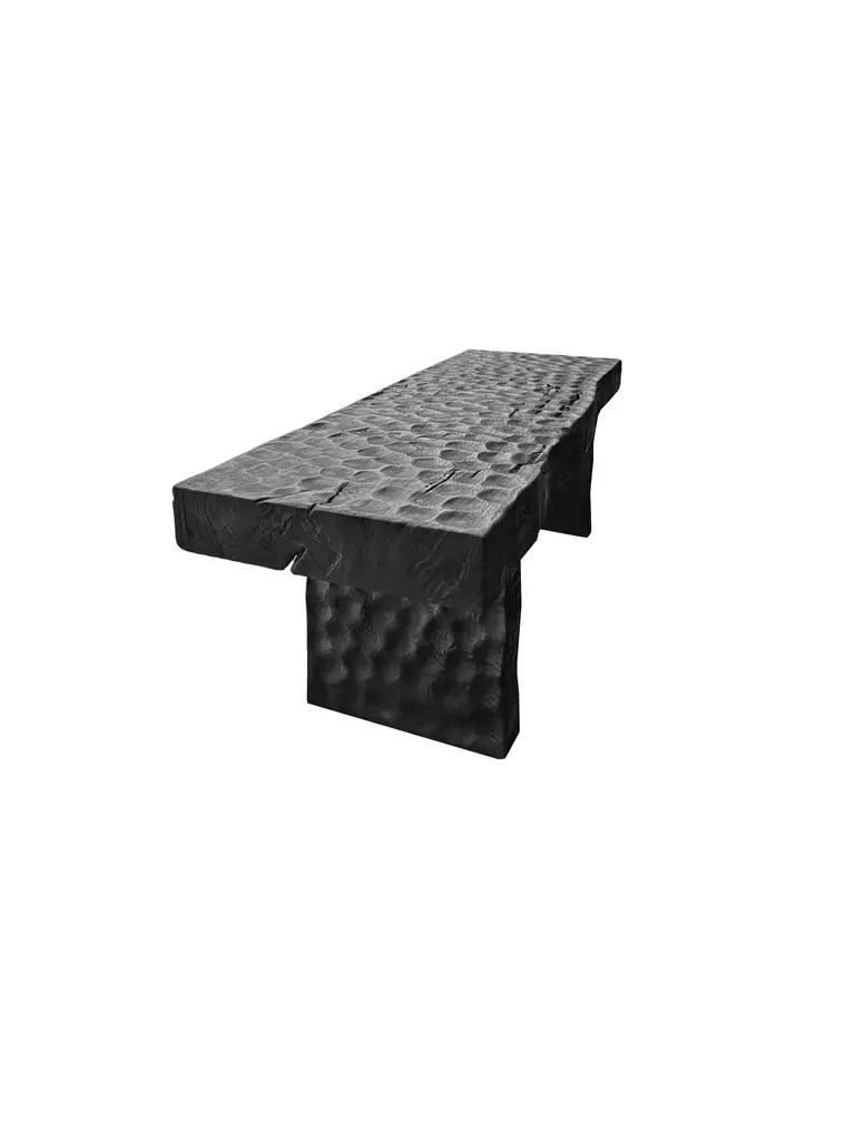Sculptural Mango Wood Bench With Burnt Finish Modern Organic