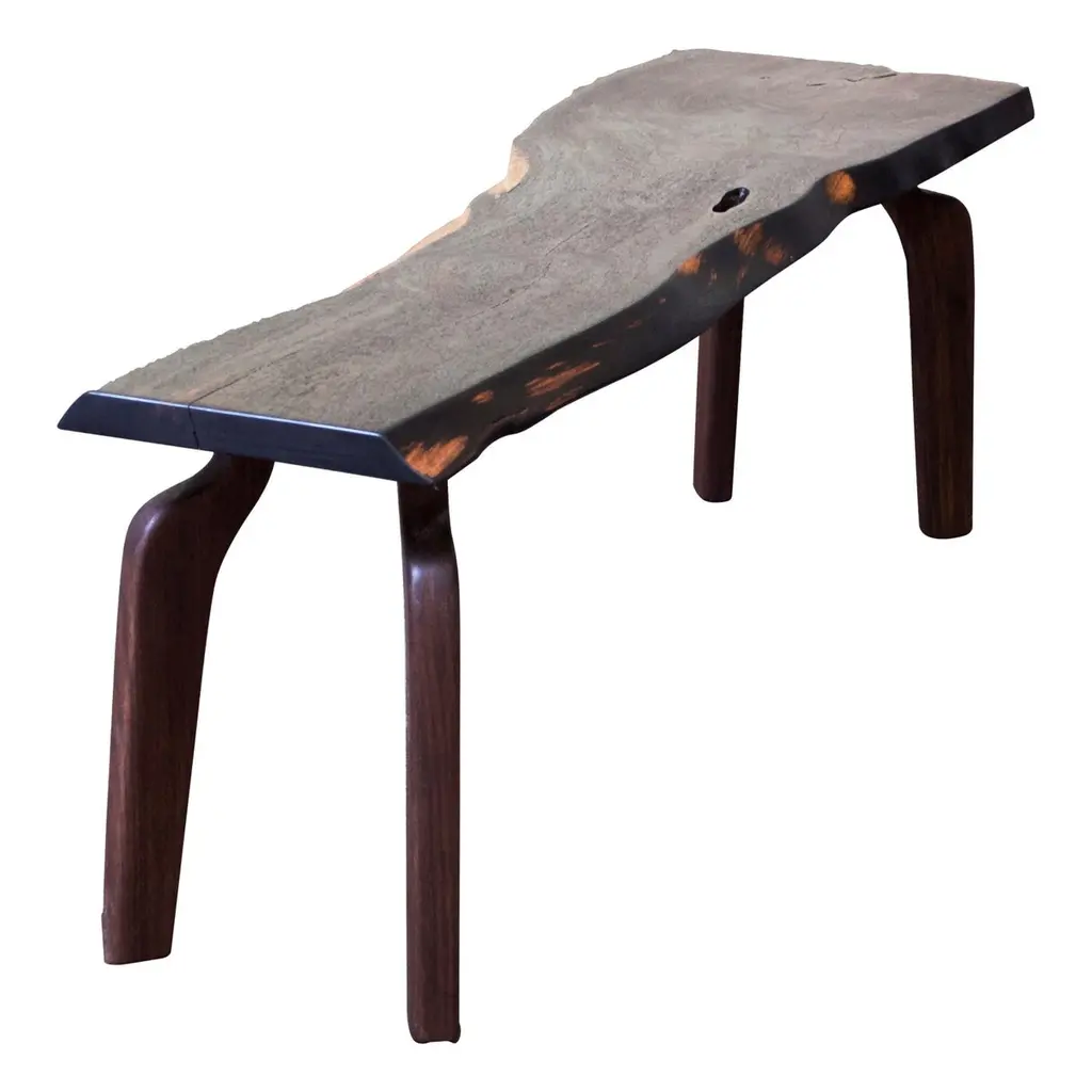 Sculptural Mango Wood Bench With Espresso Finish Modern Organic