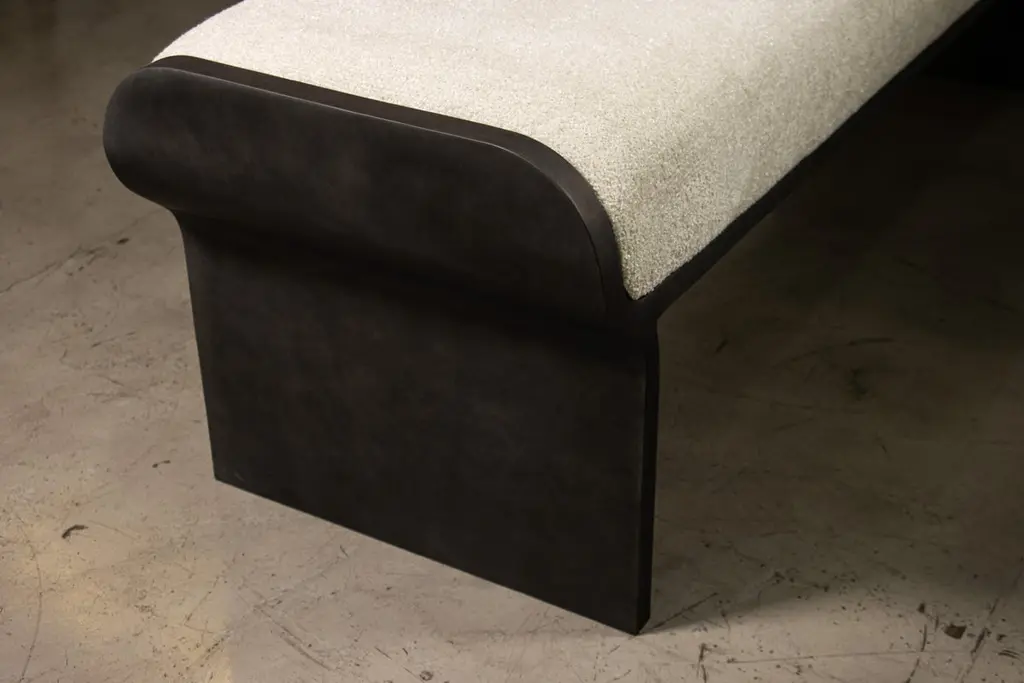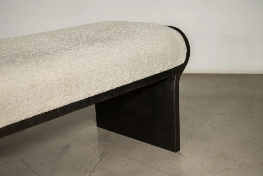 The Elia Bench by Costantini features a burnished metal frame and upholstered seat. Available as shown or in custom sizes and shapes and the fabric or leather of your choice. Additionally, the bench can be lacquered or powder coated in any color you wish. The gentle curves of the legs envelop the soft foam seat. Suitable for indoor or outdoor use as shown. Measurements are 63” L x 18” D x 18” H as shown. Available in matte, semi-gloss, high gloss finish or lacquered. Available as shown or customizable to your desired size, shape, finish, and more.About Costantini Design Costantini has been a trusted source for custom furniture, objects and lighting for a global client base since 2002. Its founder and owner, William Stuart, is a designer and artist who began his career as a multimedia artist and sculptor, practices which continue to inform the work. With a studio showroom in New York and a team of artisans at their own workshop in Buenos Aires, the Costantini team is able to connect artisans and artists with acclaimed clientele around the world. Its artisans work across many disparate materials such as bronze, solid wood, fiberglass, steel, plaster, goatskin, leather, rush, iron, marble, sheepskin and more. Visit their New York or Buenos Aires locations by appointment.