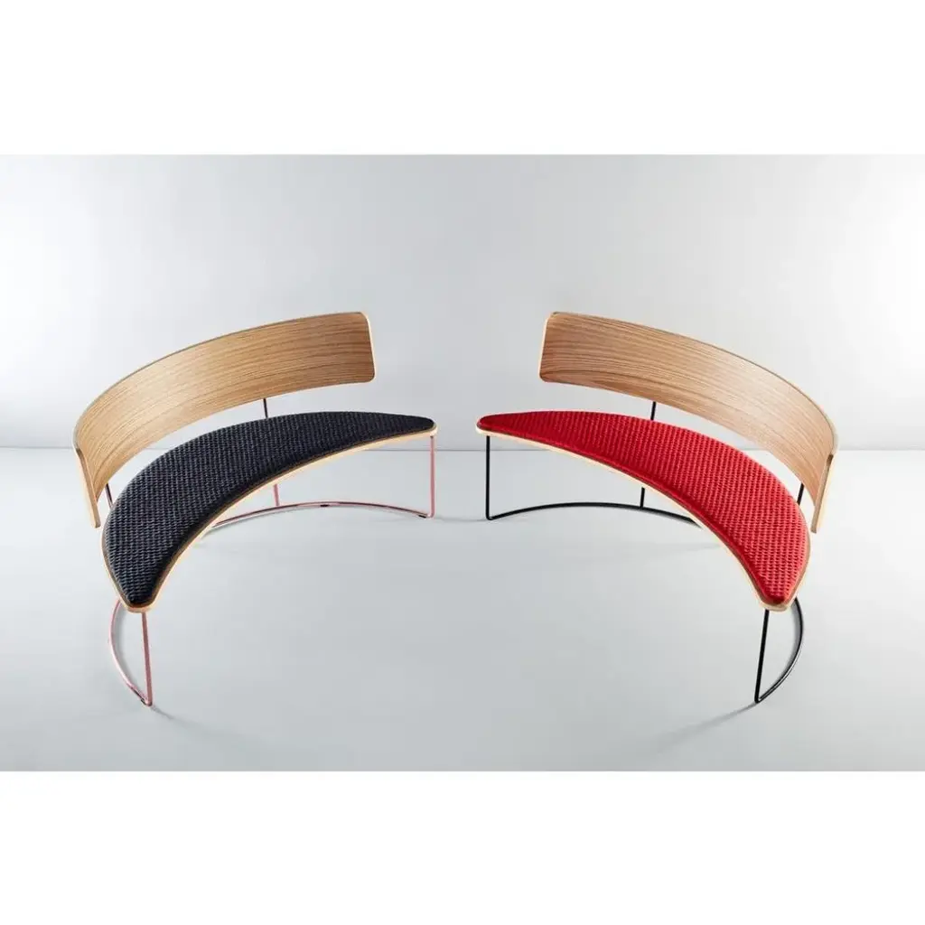 Set of 2 boomerang benches, pink by pepe albargues dimensions: w152, d72, h79, seat 43 materials: paint coated iron structure / gold / copper or chromed iron structure plywood backrest and seat covered with a natural oak wood layer upholstered seat top also available: variations of materials and colors. The sophisticated and architectural boomerang collection is inspired by the object with the same name. Its minimal design and pure aesthetics make it suitable for any spaces. The elegance of its shape provides boomerang with lightness, ergonomics and comfort. This piece is attributed to the mentioned designer/maker. It has no attribution mark and no official proof of authenticity, however it is well documented in design history. I take full responsibility for any authenticity issues arising from misattribution