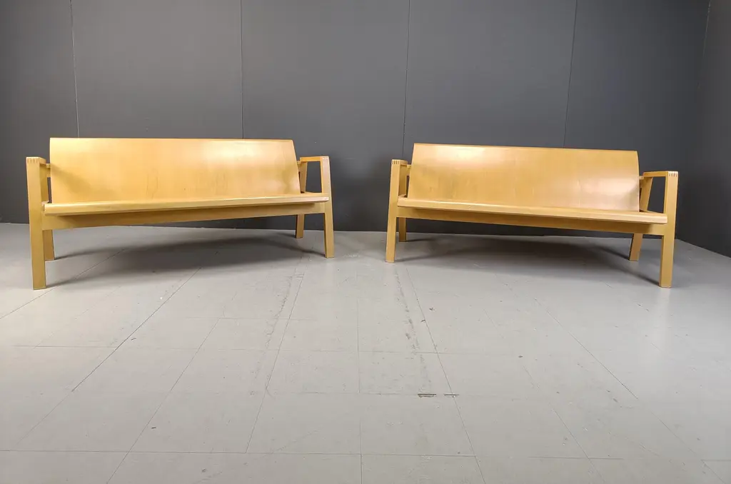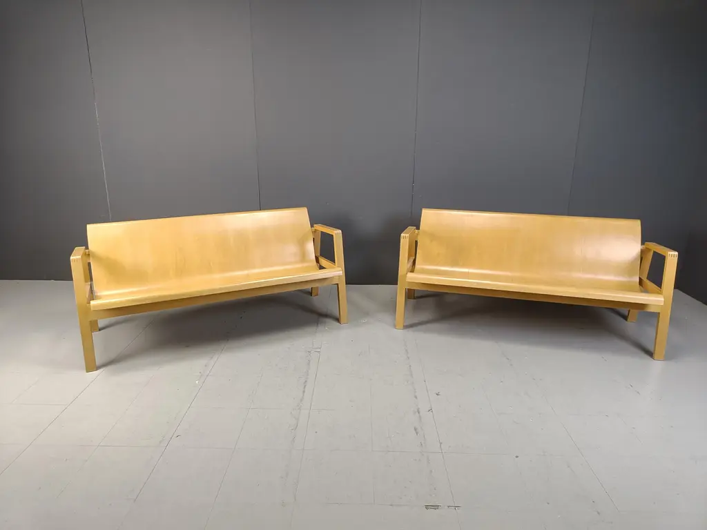 Set of Mid-Century Plywood Benches in the style of Alvar Aalto, 1960s, in Good conditions. Designed 1960 to 1969 This piece is designed in the style of the selected designer and/or manufacturer