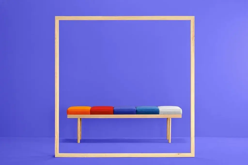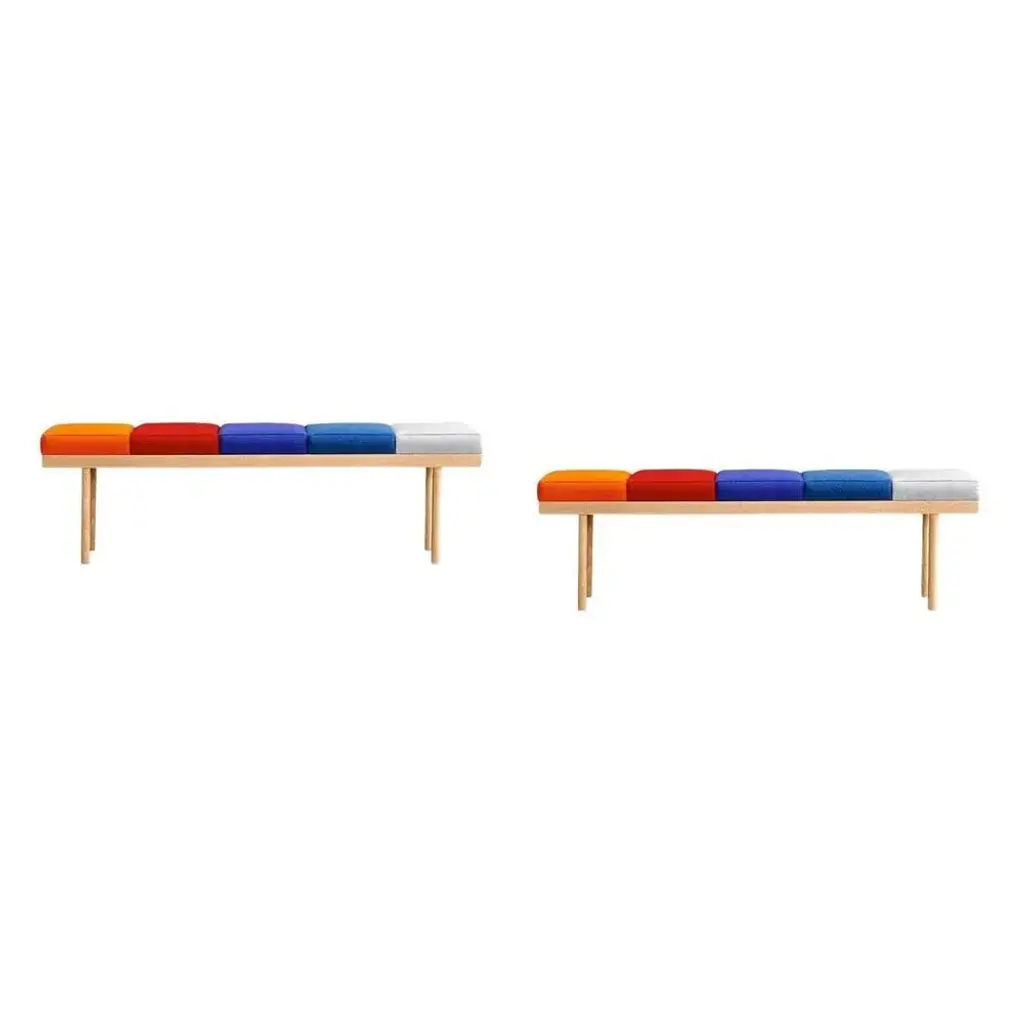 Pair of Valentino Bench by Pepe Albargues Dimensions: 45 x 150 x 45 cm Materials: Beechwood structure. Seat stuffed with polyurethane 3542. The Valentino bench is an extremely versatile piece that adapts to everyone’s mood. It invites the user to play around and create their own color combination. with its five multicolored cushions Valentino invites each person to combine them as they wish, creating their own unique composition. Create, play around and enjoy this versatile piece in the favourite corner of your home or office. This piece is attributed to the mentioned designer/maker. It has no attribution mark and no official proof of authenticity, however it is well documented in design history. I take full responsibility for any authenticity issues arising from misattribution