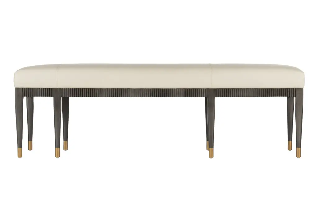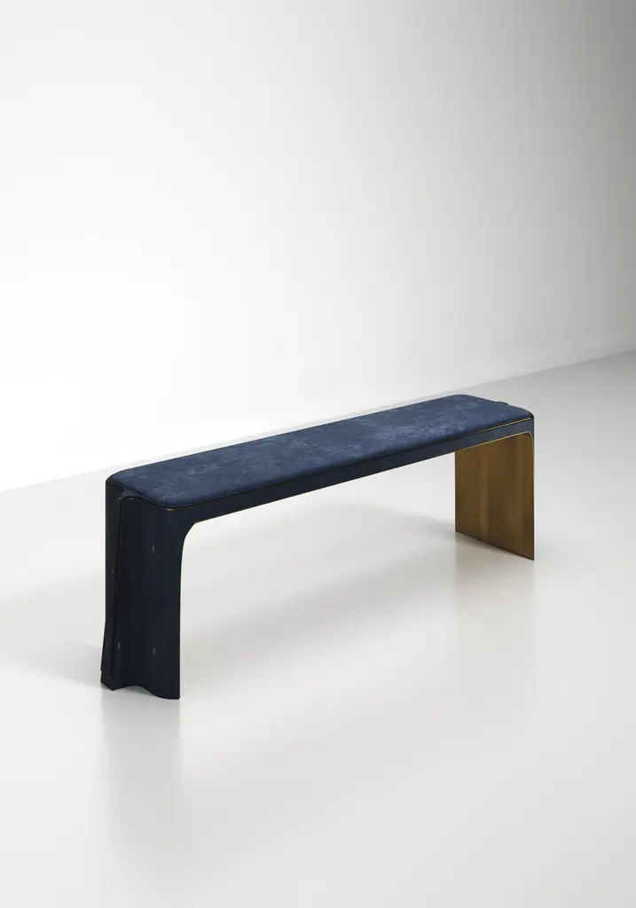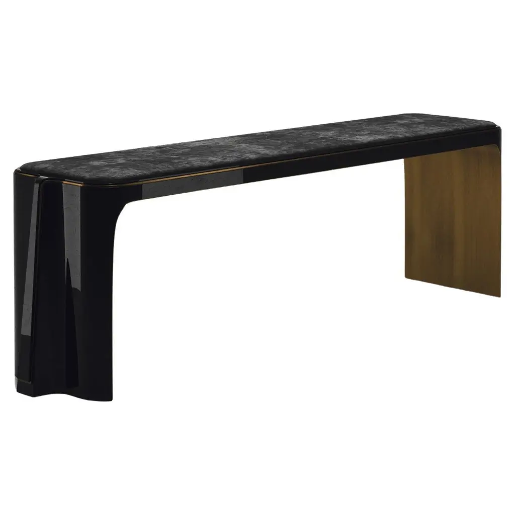 The Paris based label has distinguished themselves since their launch, with their iconic use of shagreen mixed with brass and other exotic materials. All furniture is handcrafted by skilled artisans, ultimately making each piece unique, designed in Paris and produced in the Philippines.The Axis Bench is an effortless piece that embodies sophistication along with subtle graphic detailing. Inlaid in black shagreen, the tapered frame creates a geometric aesthetic within the timeless design of the piece. The top of the bench is upholstered in a thin dark velvet cushioning and the inner lining of the bench is done in bronze-patina brass creating a beautiful pop against the neutral colour of the bench. Available as a stool, side table, bench and console. Custom sizing and finishing available on request. The dimensions of this piece are 150 x 45 x 45 cmAll R & Y Augousti pieces are handmade by artisans, ultimately making each piece unique.Wipe clean with soft dry cloth.Acclaimed design duo Ria & Yiouri Augousti have established themselves since the 1990s as pioneers of modern-vintage style through their luxurious Art Deco inspired collections.The Paris based label has distinguished themselves since their launch, with their iconic use of shagreen mixed with brass and other exotic materials. All furniture is handcrafted by skilled artisans, ultimately making each piece unique. All shagreen-covered items should be kept out of direct sunlight, color variants may occur on the stingray and other exotic finishes, but this showcases the Parisian label's commitment to creating authentic luxurious products using natural components.