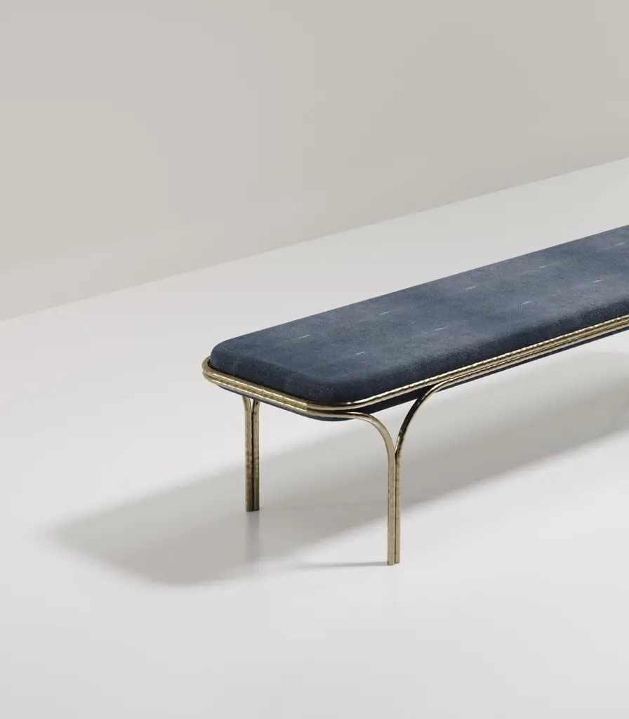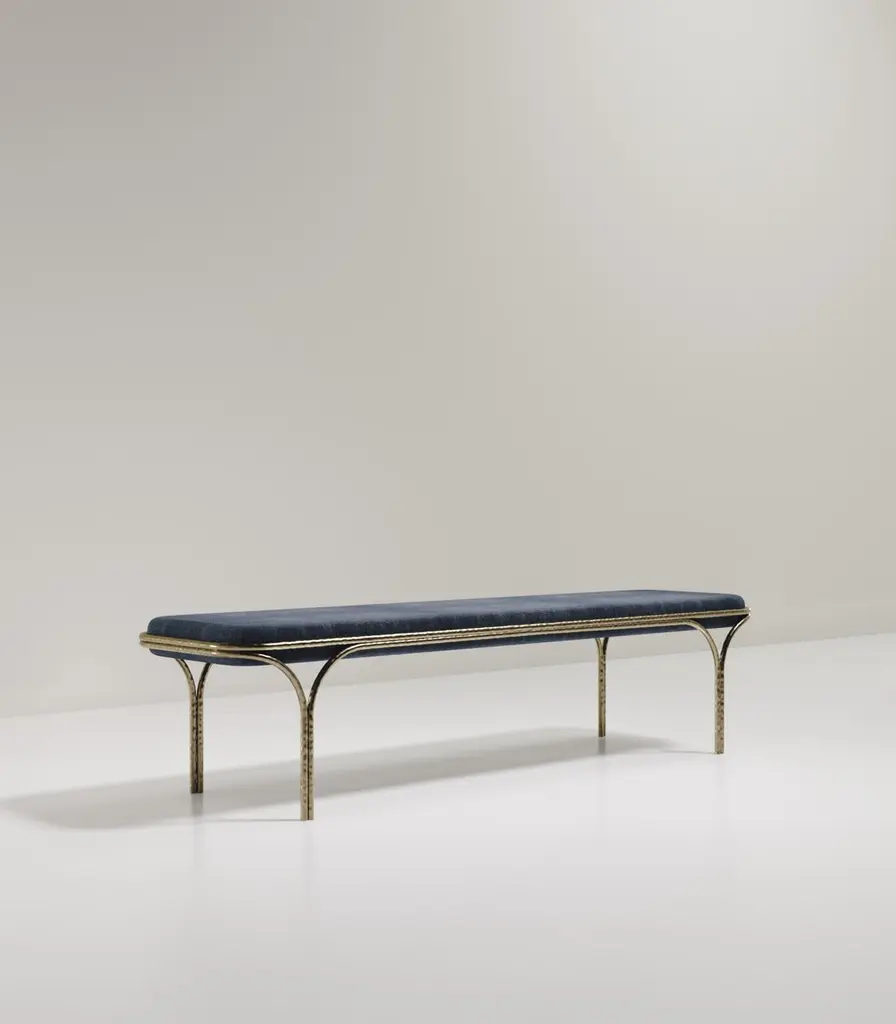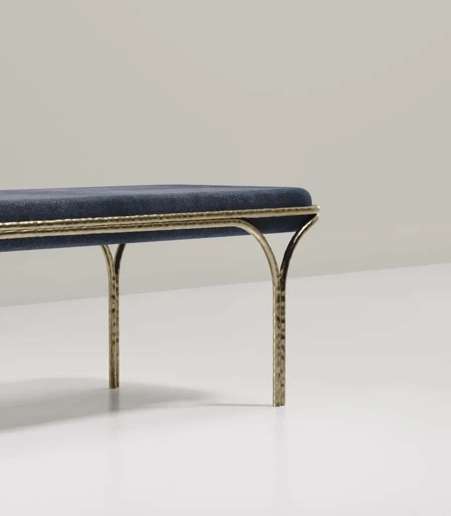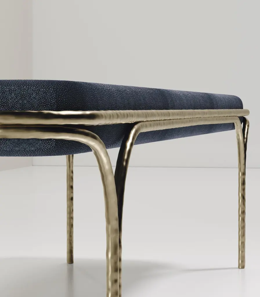 The Paris based label has distinguished themselves since their launch, with their iconic use of shagreen mixed with brass and other exotic materials. All furniture is handcrafted by skilled artisans, ultimately making each piece unique, designed in Paris and produced in the Philippines.The Arianne Bench by R&Y Augousti is an elegant piece for any space. The denim blue shagreen seat, with curved edges, sits on an organic bronze-patina frame. The intricate frame and legs have a "melting" effect, a signature of Augousti. This piece is part of the Arianne Capsule, see images at end of slide of the collection. Available in other finishes, see images at end of slide. Custom sizing / finishing available in requestMeasures: 140 x 40 x 50 cm All R & Y Augousti pieces are handmade by artisans, ultimately making each piece unique. Custom color/sizing available on request. Wipe clean with soft dry cloth.Acclaimed design duo Ria & Yiouri Augousti have established themselves since the 1990s as pioneers of modern-vintage style through their luxurious Art Deco inspired collections.The Paris based label has distinguished themselves since their launch, with their iconic use of shagreen mixed with brass and other exotic materials. All furniture is handcrafted by skilled artisans, ultimately making each piece unique. All shagreen-covered items should be kept out of direct sunlight, color variants may occur on the stingray and other exotic finishes, but this showcases the Parisian label's commitment to creating authentic luxurious products using natural components.