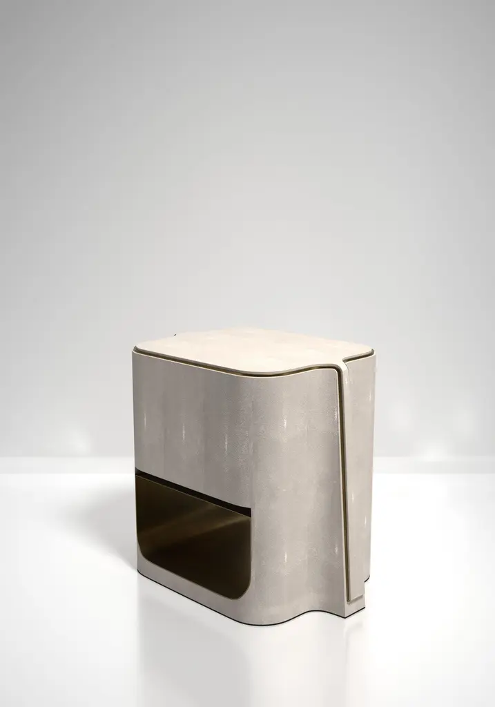 The Paris based label has distinguished themselves since their launch, with their iconic use of shagreen mixed with brass and other exotic materials. All furniture is handcrafted by skilled artisans, ultimately making each piece unique, designed in Paris and produced in the Philippines.The Axis Bench is an effortless piece that embodies sophistication along with subtle graphic detailing. Inlaid in cream shagreen, the tapered frame creates a geometric aesthetic within the timeless design of the piece. The top of the bench is upholstered in a thin cream velvet cushioning and the inner lining of the bench is done in bronze-patina brass creating a beautiful pop against the neutral colour of the bench. Available as a stool, side table, bench and console. Custom sizing and finishing available on request. The dimensions of this piece are 150 x 45 x 45 cmAll R & Y Augousti pieces are handmade by artisans, ultimately making each piece unique.Wipe clean with soft dry cloth.Acclaimed design duo Ria & Yiouri Augousti have established themselves since the 1990s as pioneers of modern-vintage style through their luxurious Art Deco inspired collections.The Paris based label has distinguished themselves since their launch, with their iconic use of shagreen mixed with brass and other exotic materials. All furniture is handcrafted by skilled artisans, ultimately making each piece unique. All shagreen-covered items should be kept out of direct sunlight, color variants may occur on the stingray and other exotic finishes, but this showcases the Parisian label's commitment to creating authentic luxurious products using natural components.