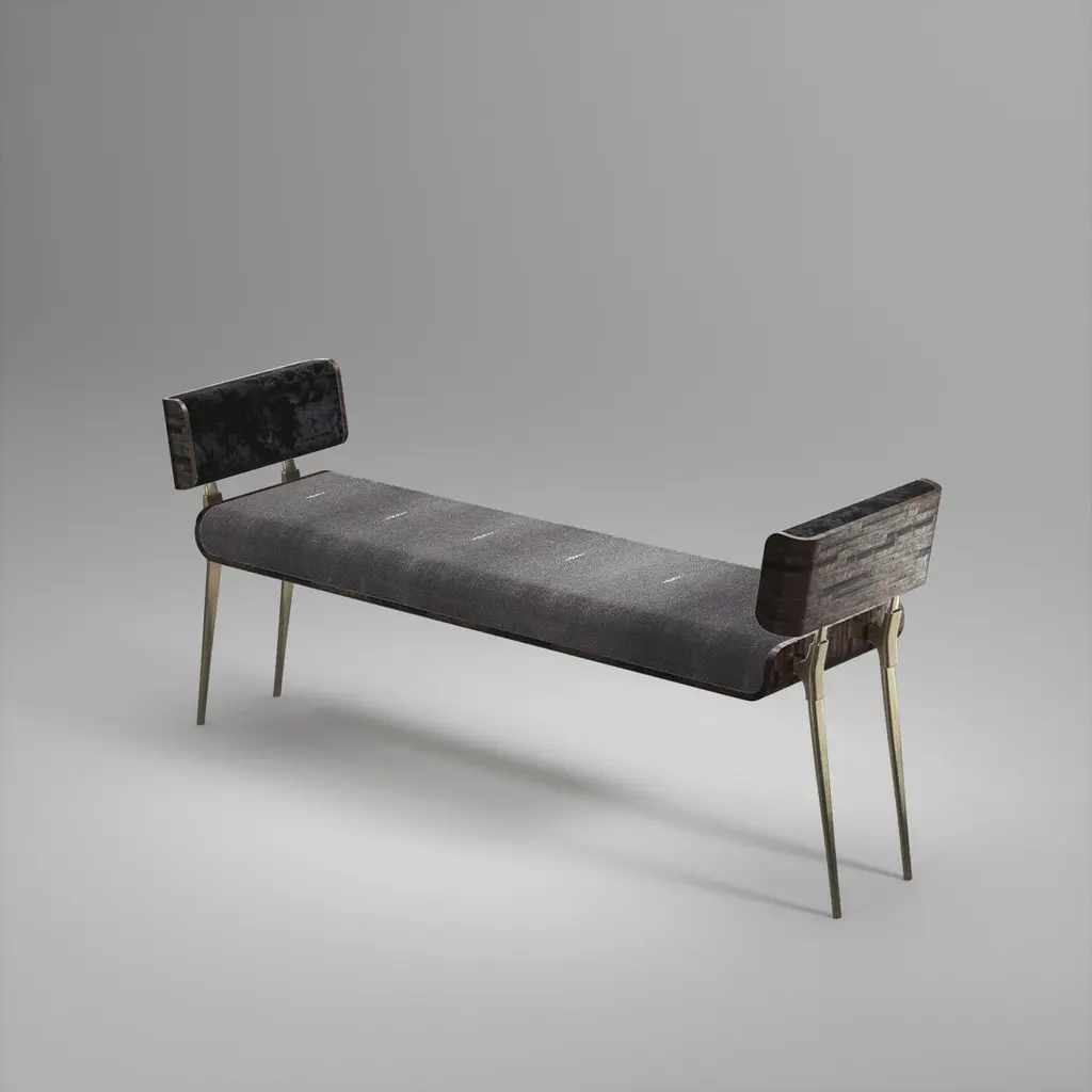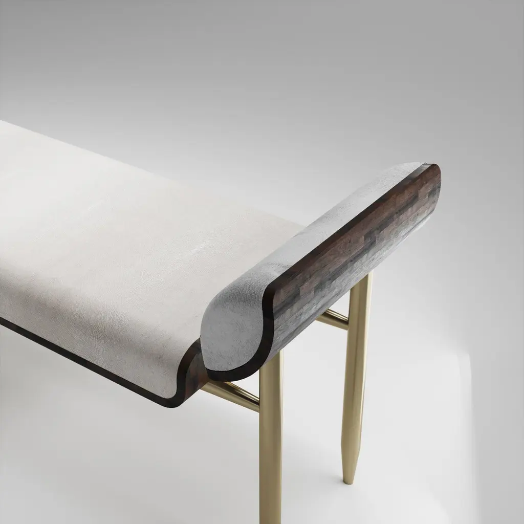 Shagreen Bench With Palmwood And Bronze-Patina Brass Details By Kifu Paris