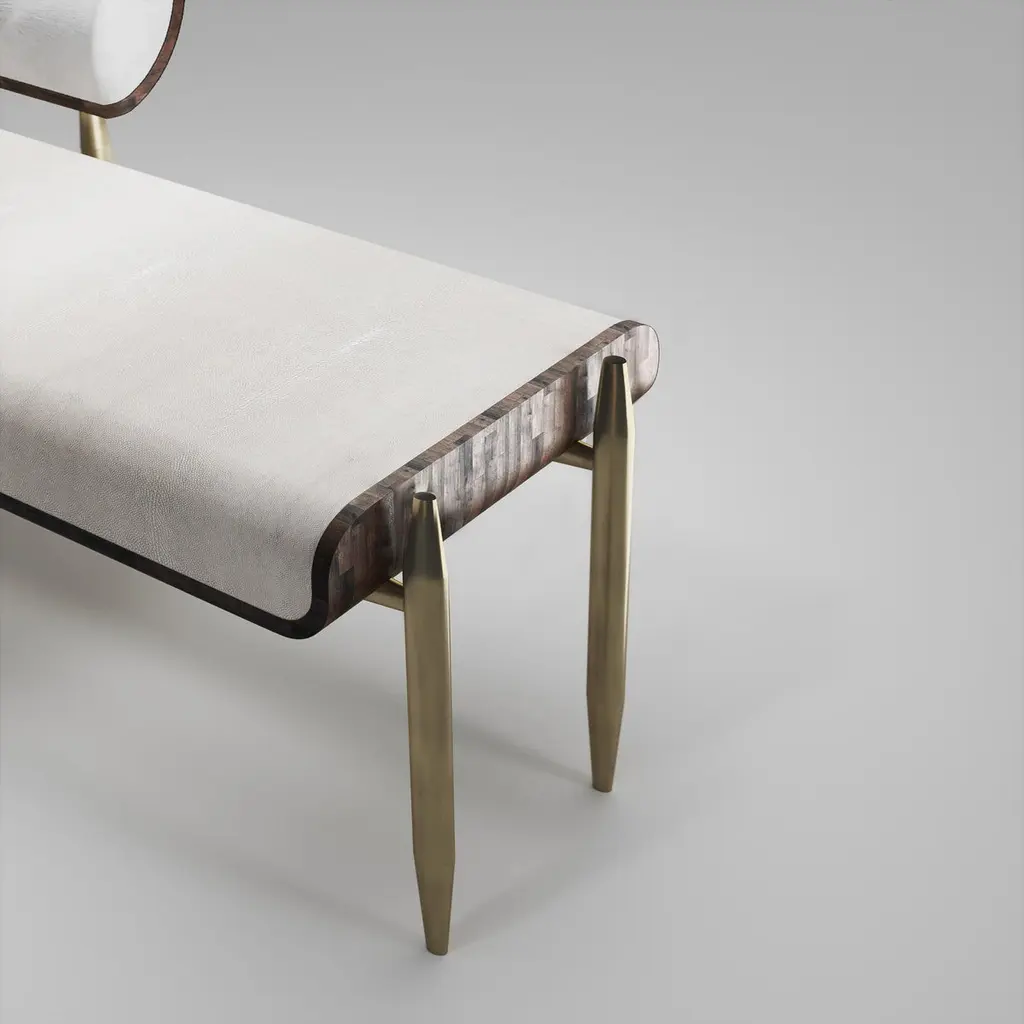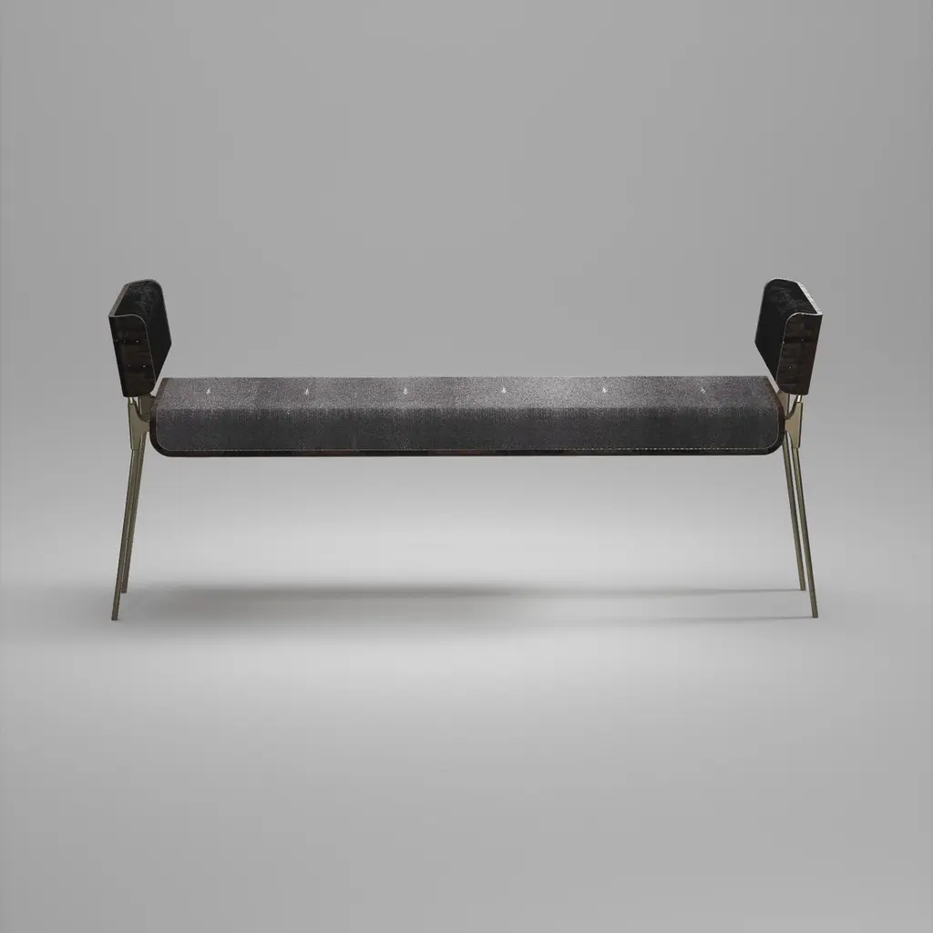 Shagreen Bench With Palmwood And Bronze-Patina Brass Details By Kifu Paris