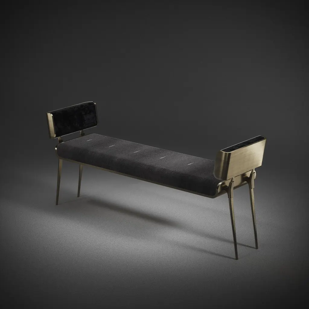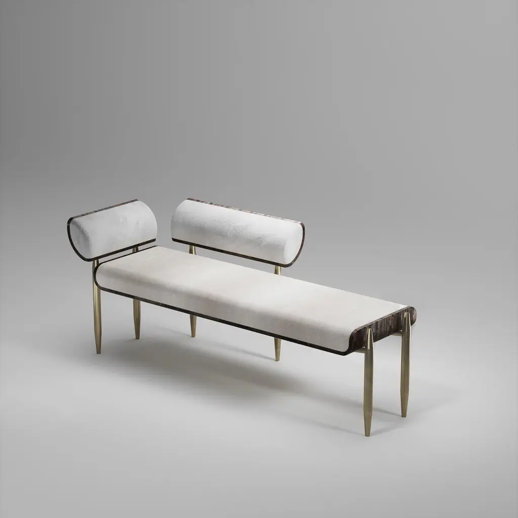 The Paris based label has distinguished themselves since their launch, with their iconic use of shagreen mixed with brass and other exotic materials. All furniture is handcrafted by skilled artisans, ultimately making each piece unique, designed in Paris and produced in the Philippines.Inspired by the original Dandy Bench by Kifu Paris (see images at end of slide), the Dandy II day bed is the ultimate luxury seating. The seating area is inlaid in coal black shagreen, the frame and sides of the bench in Palmwood and the legs are completely inlaid in bronze-patina brass. On the left side of the day bed are arm and back rests upholstered in black vachette Other versions are also available as part of the Dandy II Capsule, see images at end of slide. This piece is designed by the daughter of Ria and Yiouri Augousti. The finish of the shagreen is authentic as it is hand-dyed and the designer calls the finish look: "coal black shagreen."The dimensions of this piece are 145.7 x 54.5 x 60.3 cmAll Kifu Paris pieces are handmade by artisans, ultimately making each piece unique. Wipe clean with soft dry cloth.Although inspired by her parents, her collection of Home Accessories and Furniture is a distinct identity of its own. Kifu uses handmade techniques of elaborate inlay patterns of shagreen, shells, semi-precious stones, materials she experienced as a child growing up in her parent’s studio, but interpreted in a younger quirkier way reflecting her youth. From her "jewelry inspired knobs" on decorative boxes, gold bar boxes and an extravagant inlay pattern mix of shagreen and shell inspired by galactic constellations, as seen on her enormous round mirror, is refreshing to see. Kifu embodies whimsical elements throughout her collection and is not afraid to be daring and unexpected in her approach to design. All shagreen-covered items should be kept out of direct sunlight, color variants may occur on the stingray and other exotic finishes, but this showcases the Parisian label's commitment to creating authentic luxurious products using natural components.
