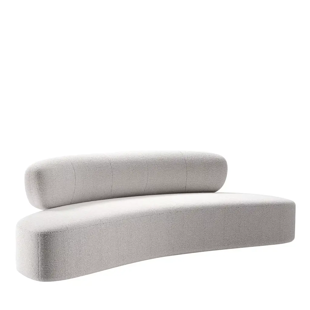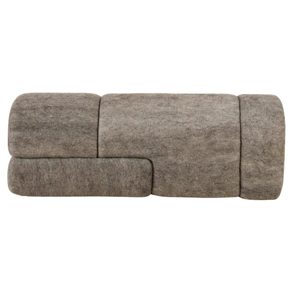 Sheep bench is designed by Studio Ahead. The bench is upholstered in custom cream merino wool felt from Northern California sheep. Each side design is unique. Designed and fabricated in North California. The form of the bench is inspired by the curvature of stones found at Muir Beach, which have been shaped over time by ocean currents. Each side design is unique.Dimensions :40in. Width, 12.25 in. Depth, 14in. HeightCustom sizes available upon requestAvailable in 4 wool felt color options and COM upon request.